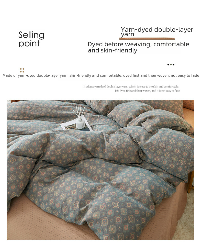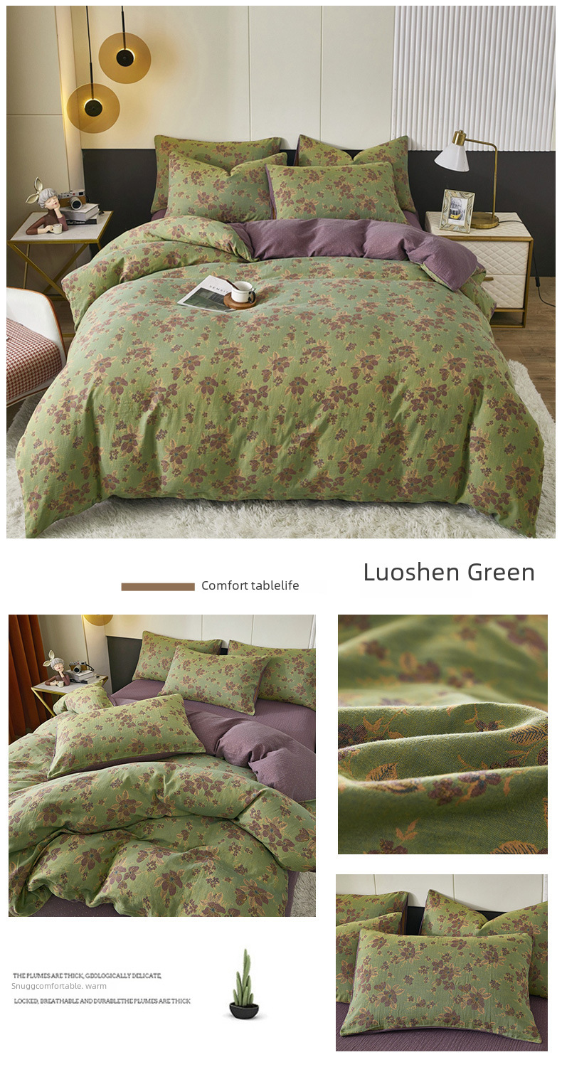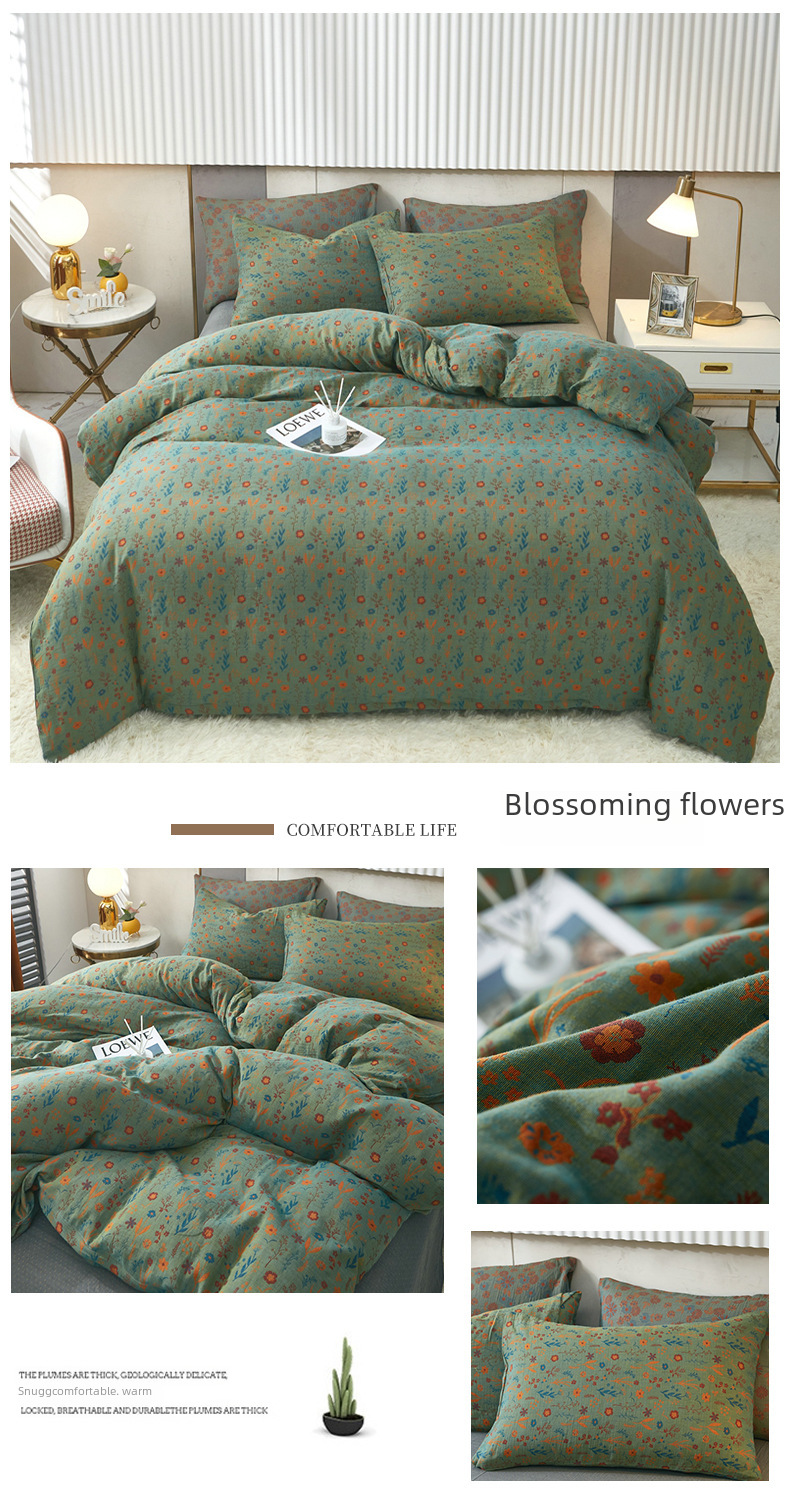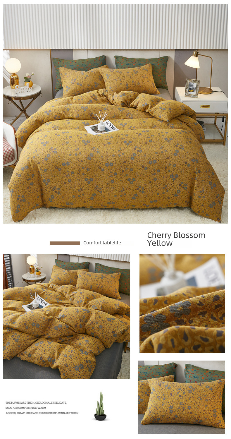 Class A cotton double layer gauze four piece set cotton yarn skin friendly nude sleeping bed sheet quilt cover ins Nordic style jacquard four seasons