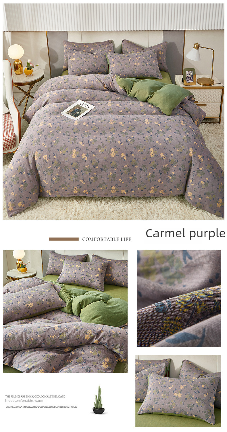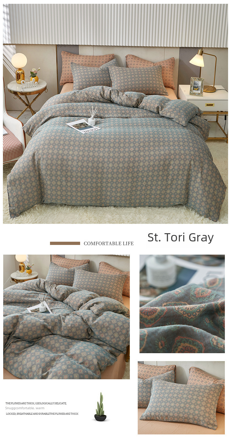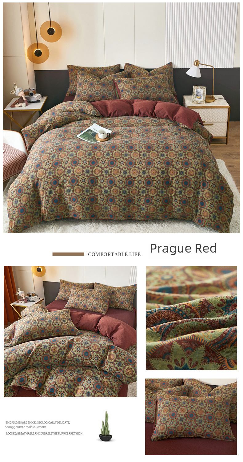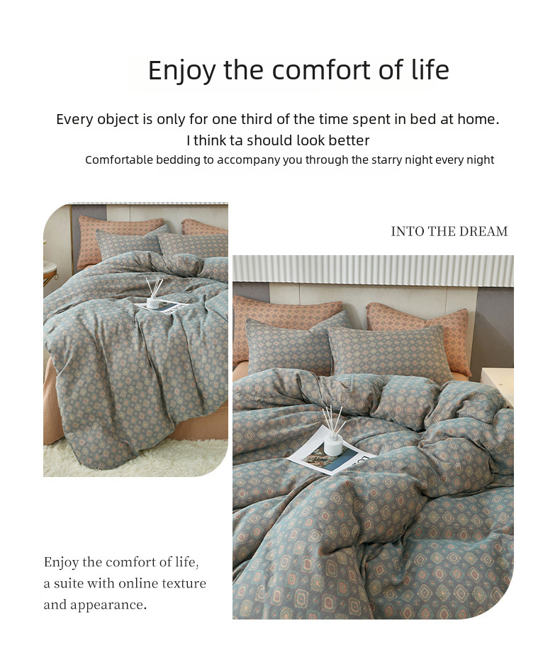 Class A cotton double layer gauze four piece set cotton yarn skin friendly nude sleeping bed sheet quilt cover ins Nordic style jacquard four seasons