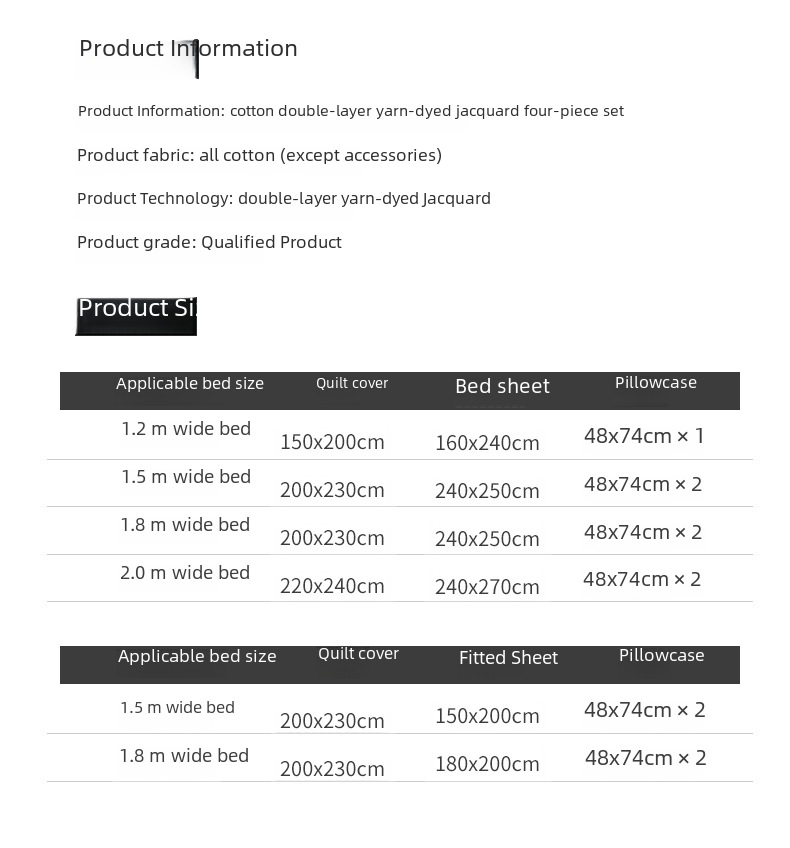 - Quilt cover: 200*230cm + a pair of pillowcases