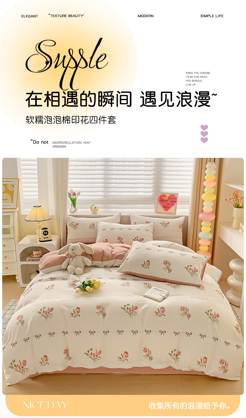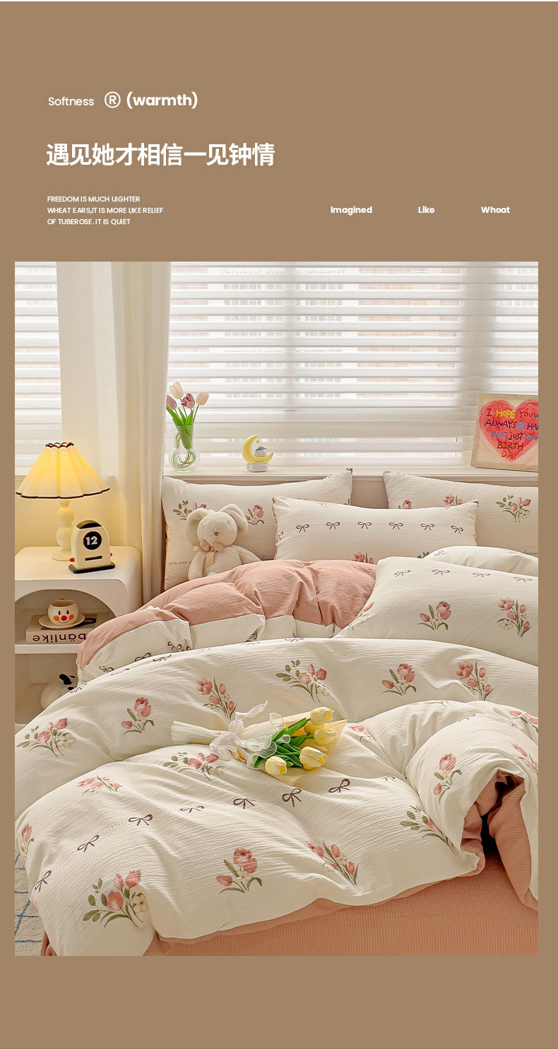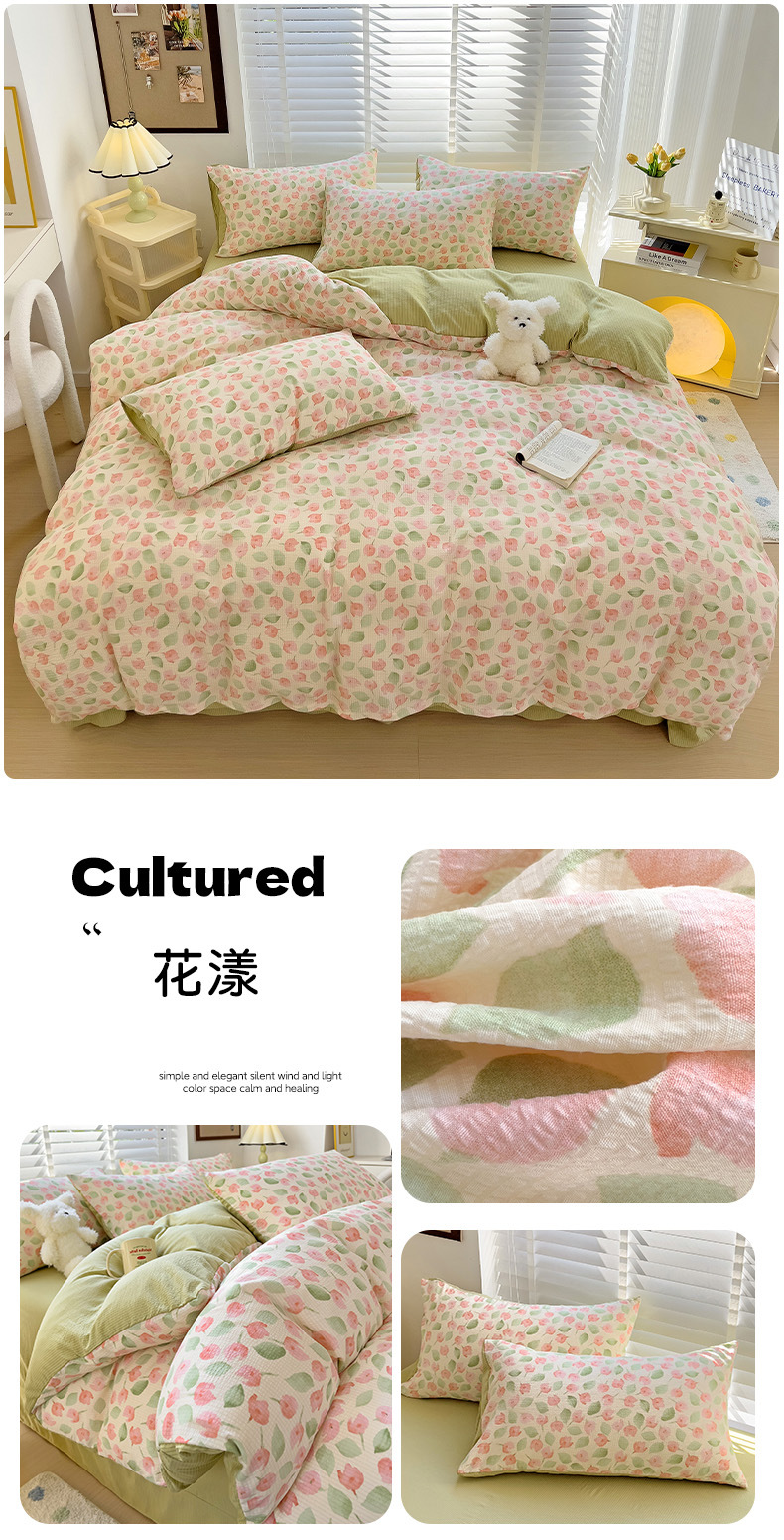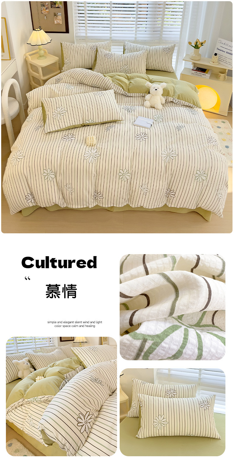 Class A maternal and child grade bubble cotton four-piece set new jacquard dormitory thickened bed three-piece quilt cover bed sheet wholesale