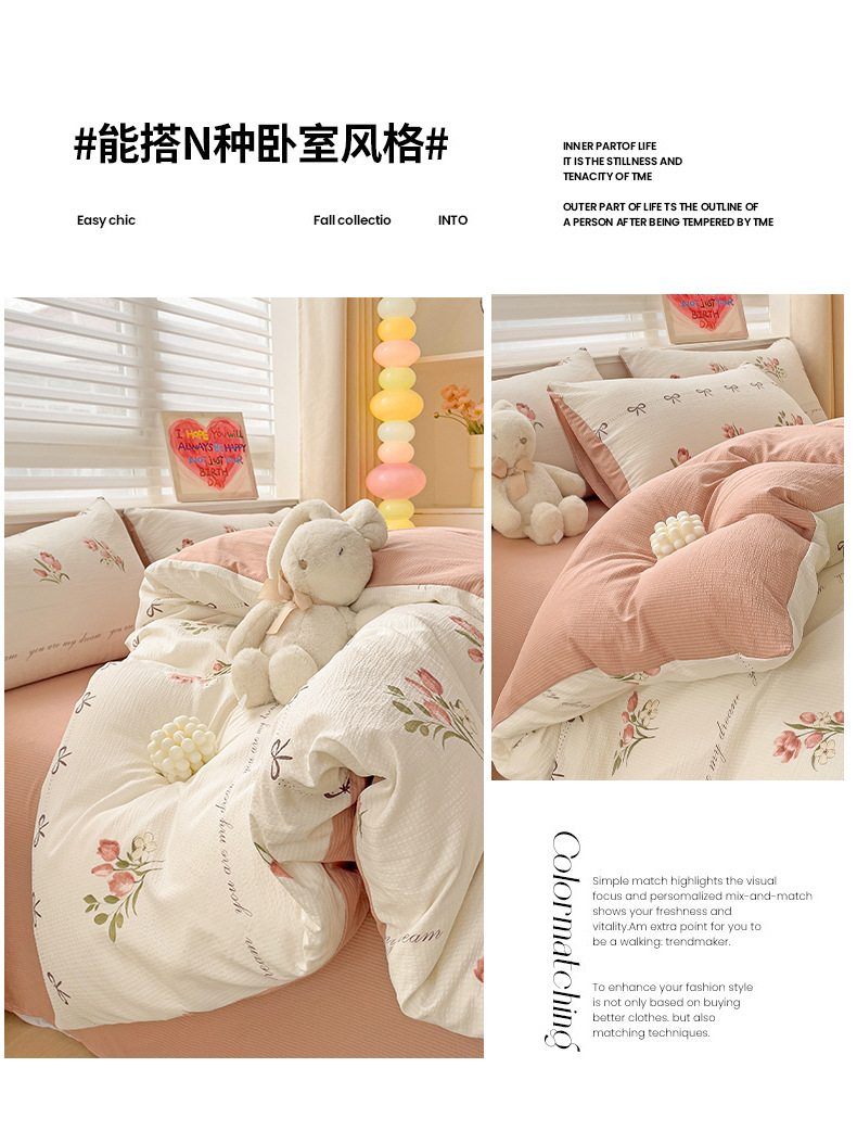 - 1.5m fitted sheet four-piece set [quilt cover 200*230 fitted sheet 150*200]]