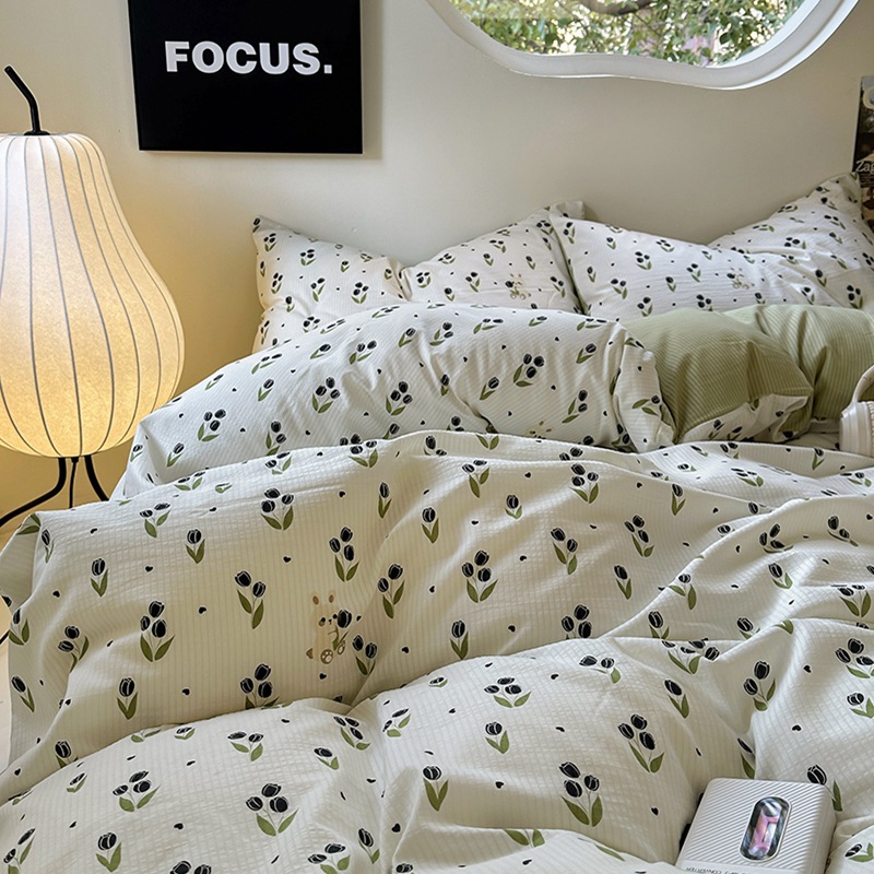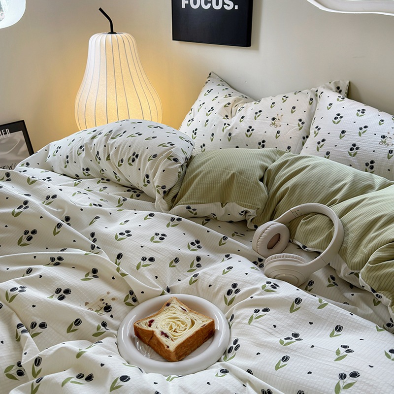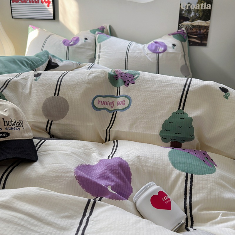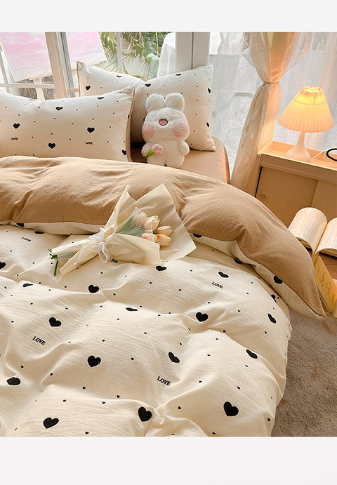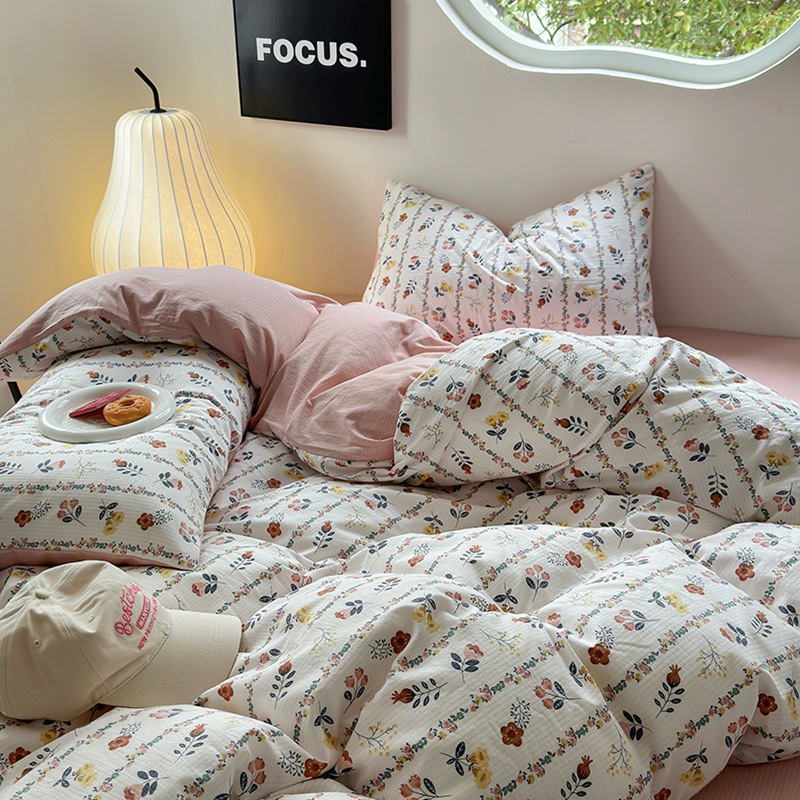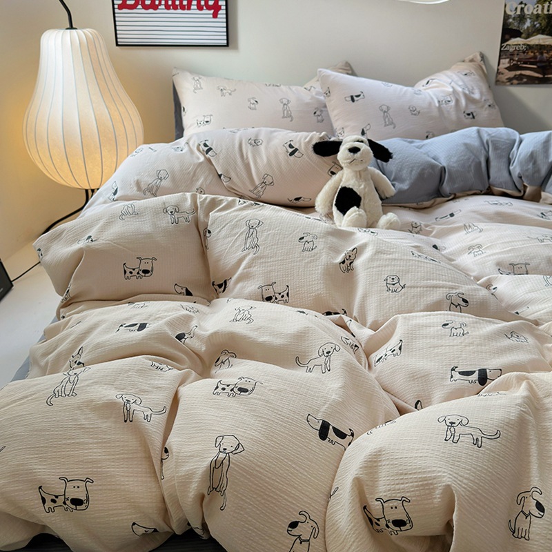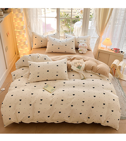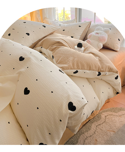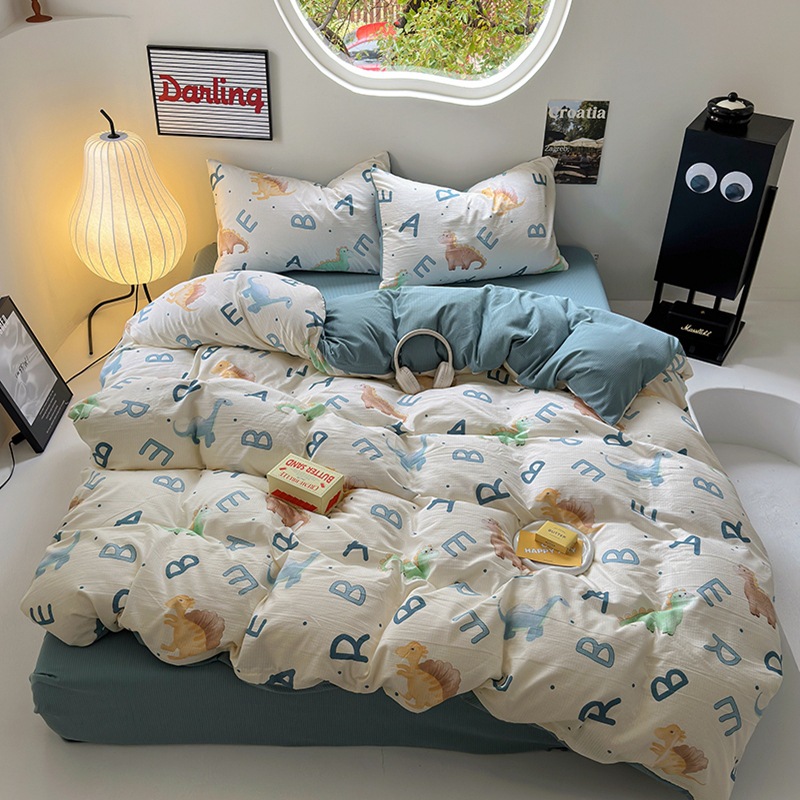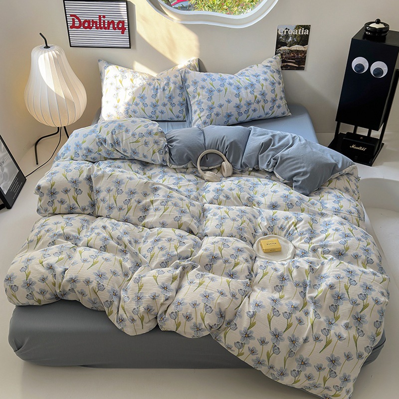 Class A maternal and child-grade double-layer yarn bubble cotton four-piece set printed washed cotton three-piece cotton quilt cover dormitory bedding