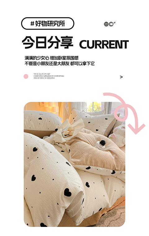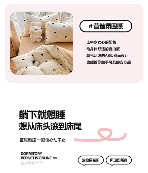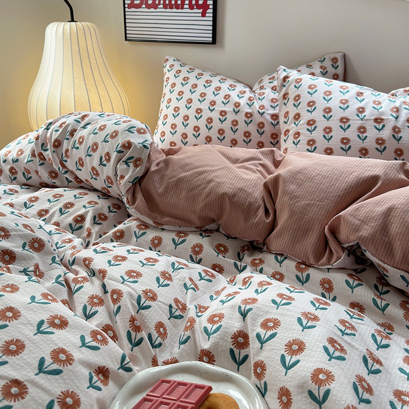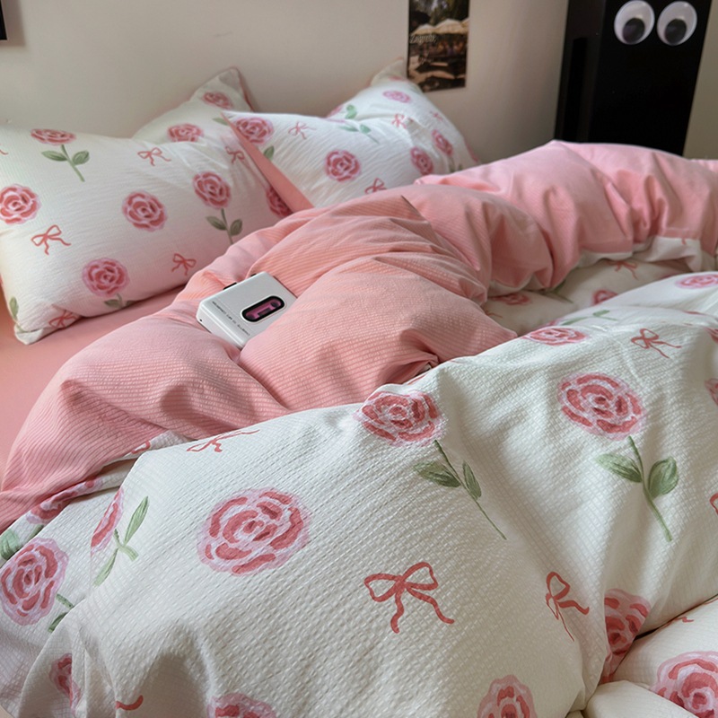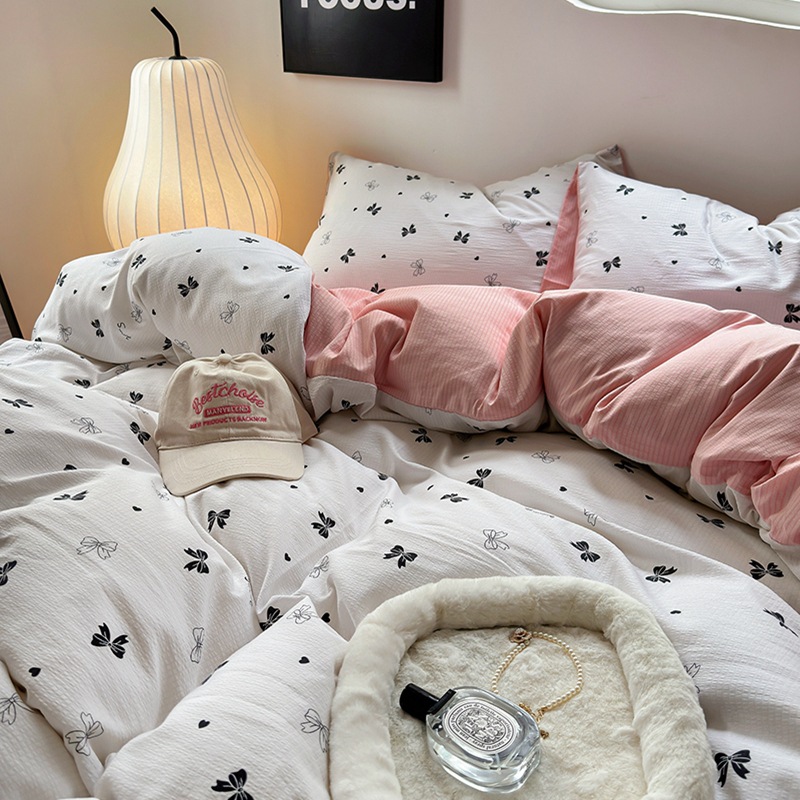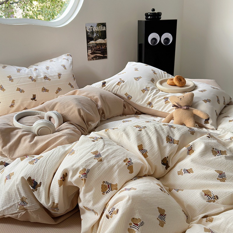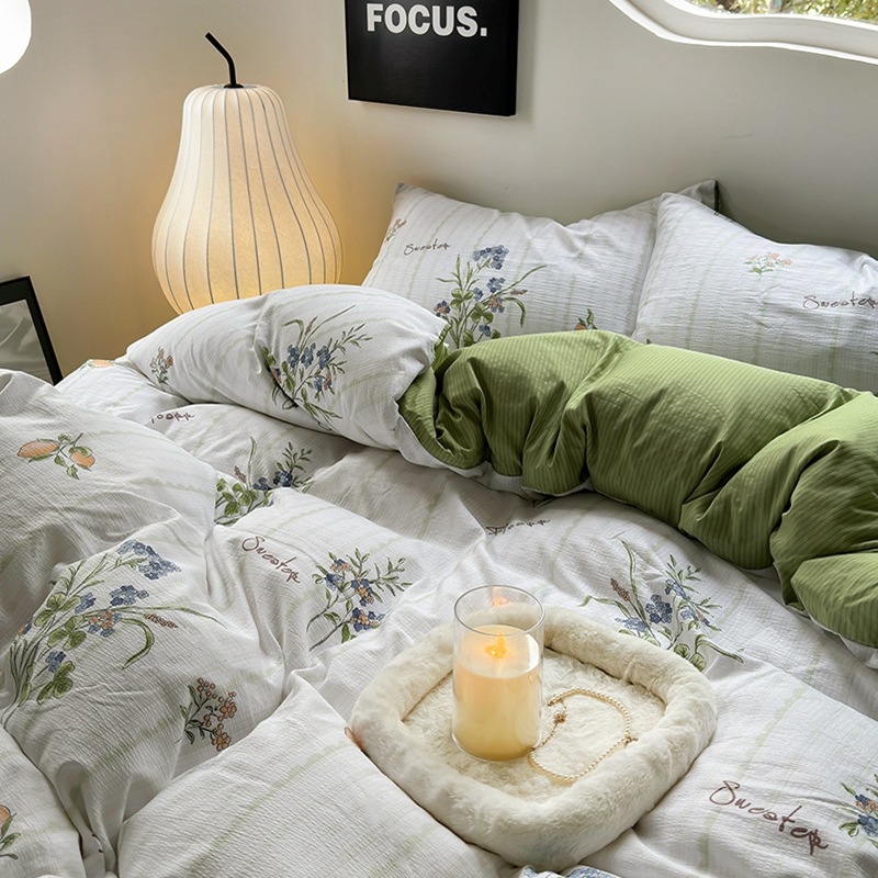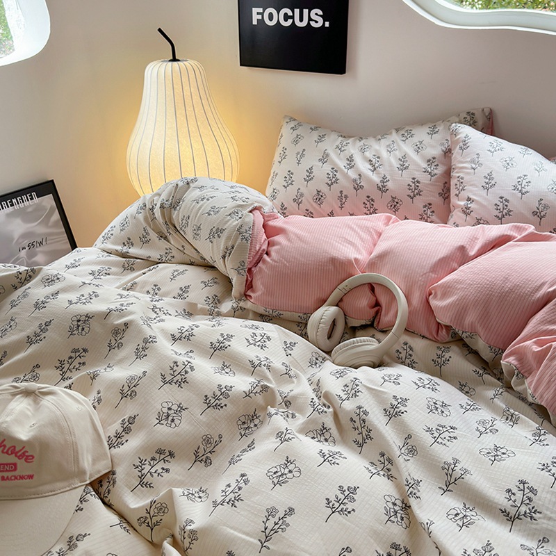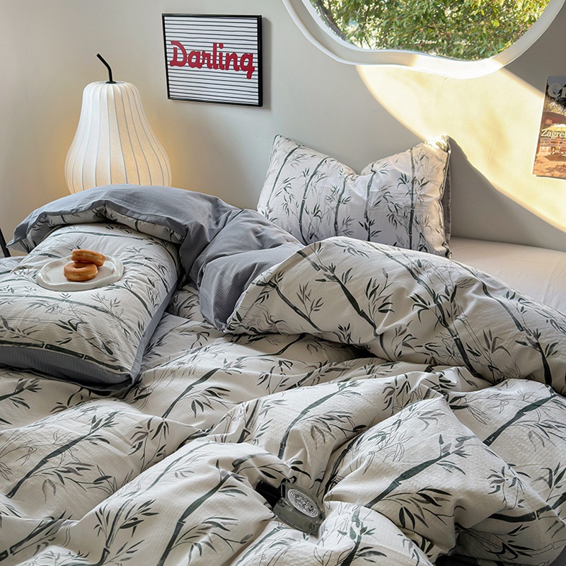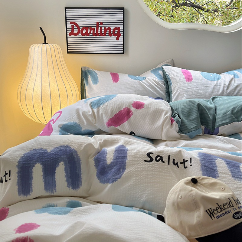 Class A maternal and child-grade double-layer yarn bubble cotton four-piece set printed washed cotton three-piece cotton quilt cover dormitory bedding