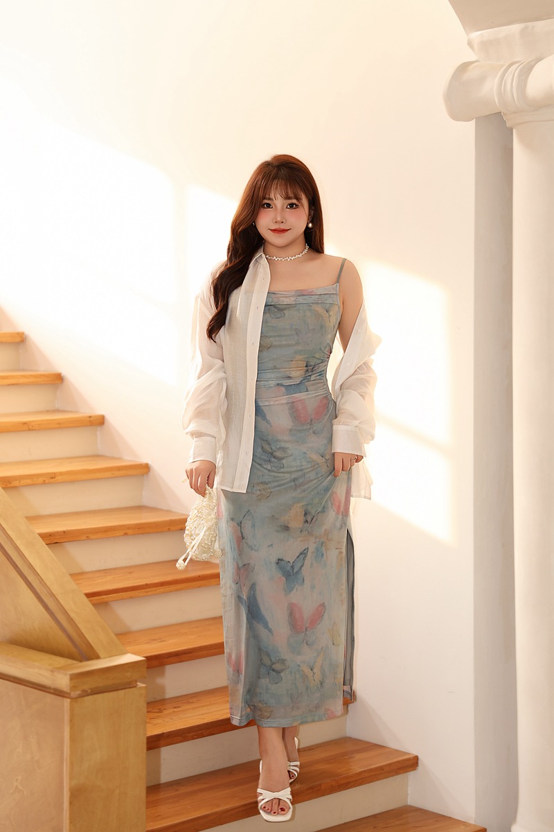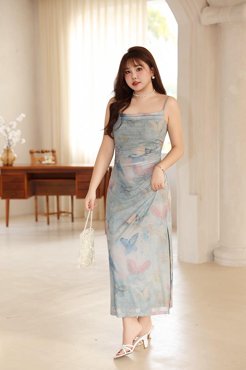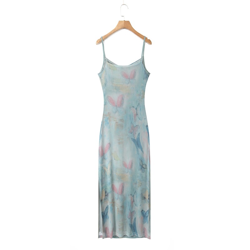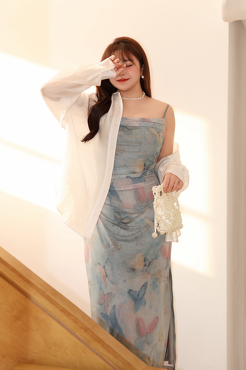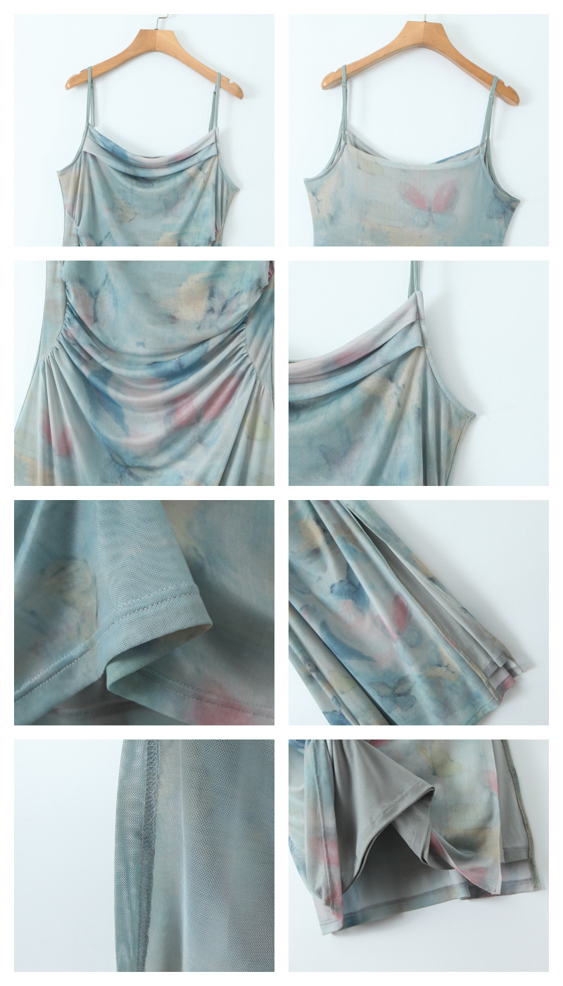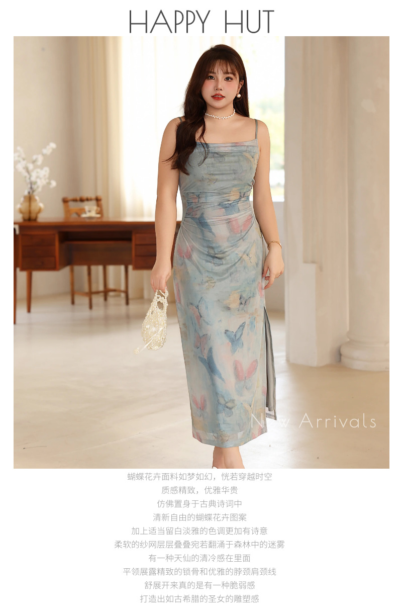 Cloud Mist tulle Blue Dream printed suspender skirt Runqi 8849 plus size French elegant printed suspender dress