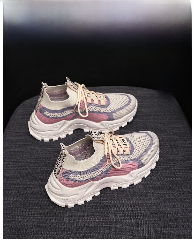 Clunky sneakers for women 2023 new summer thick soled versatile running shoes popular mesh breathable lightweight white sneaker