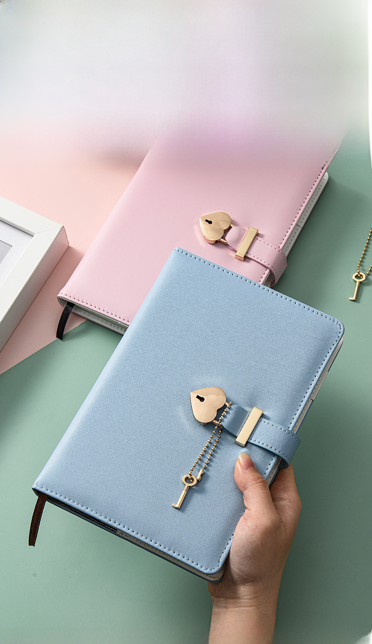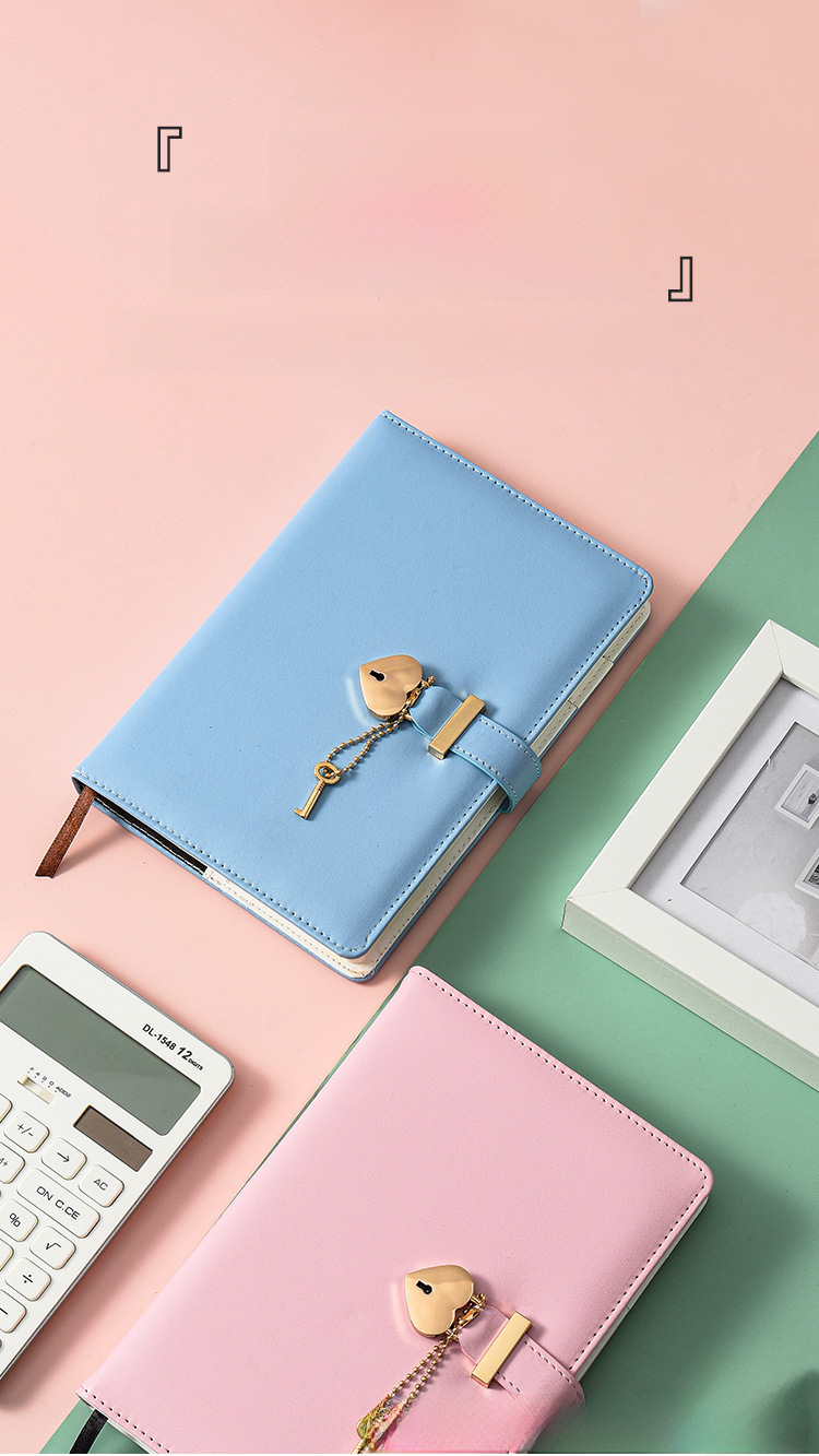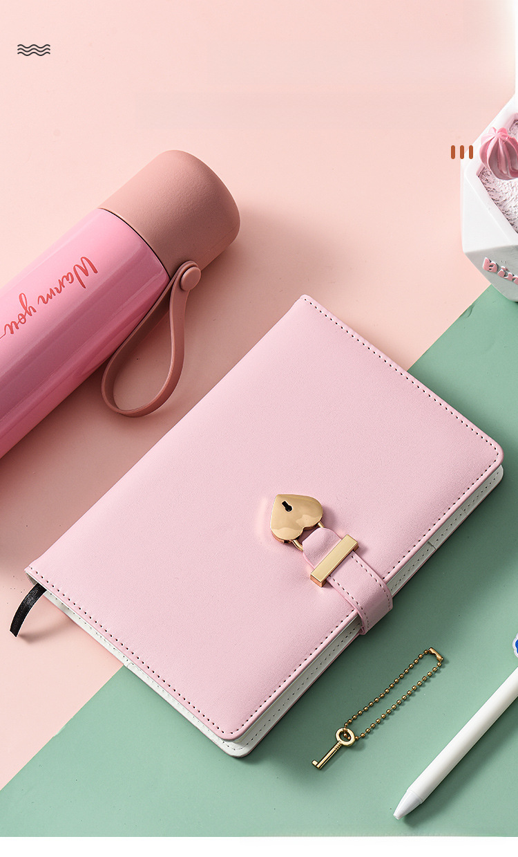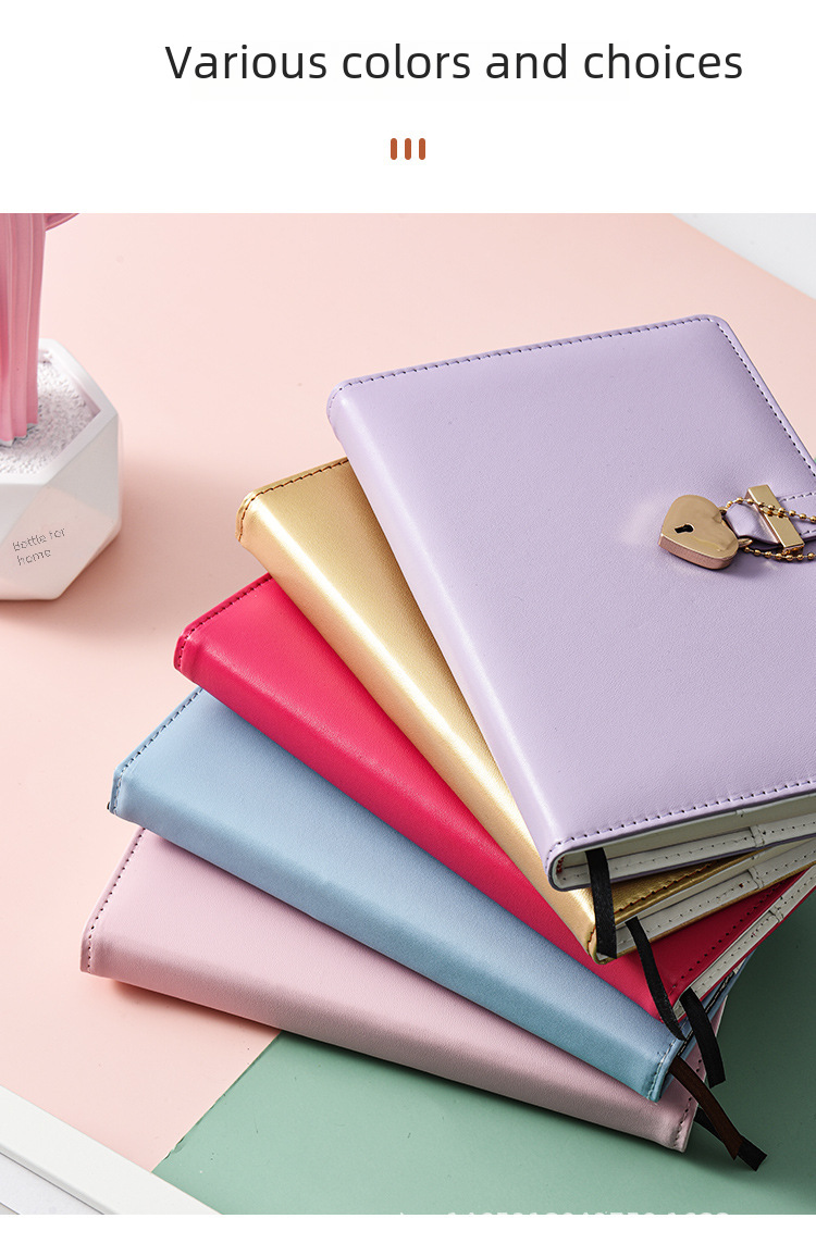 Code Book with Lock Notebook Thickened Notepad Creative Heart shaped Lock Cute Girl Love Lock Diary