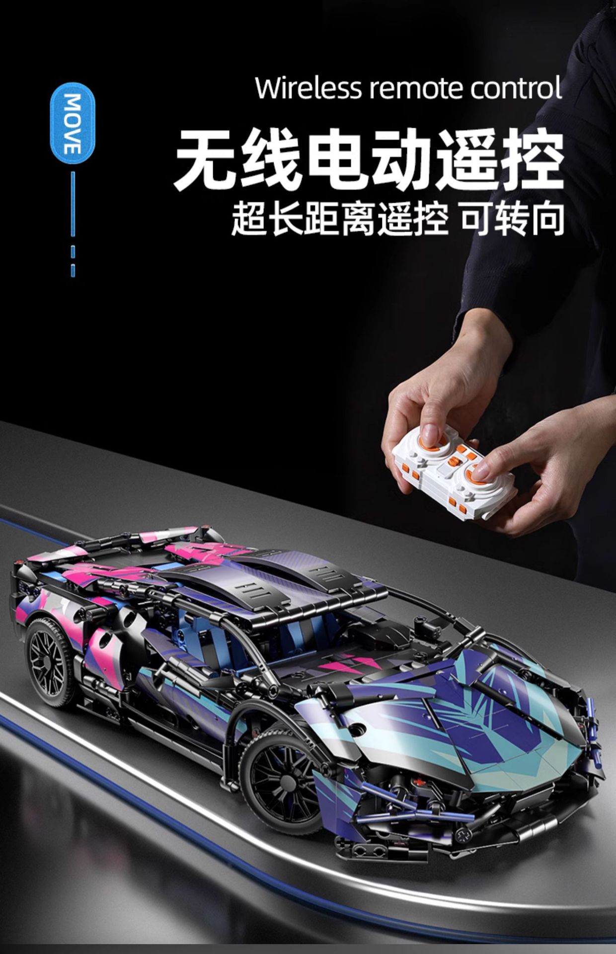 Compatible with Lego Cyberpunk Chinese Building Blocks Puzzle Assembled Model Remote Control Car Boy Toy Mechanical Racing Car