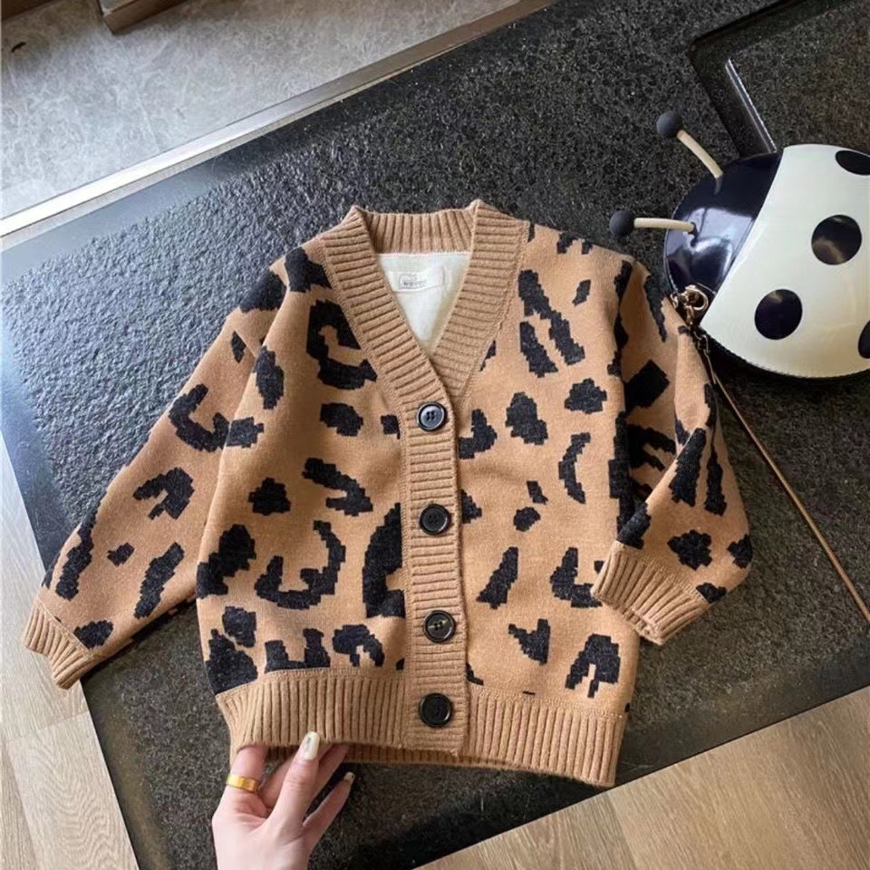 Composite Crystal velvet lining new boys and girls velvet sweater knitted cardigan coat autumn and winter baby Korean
