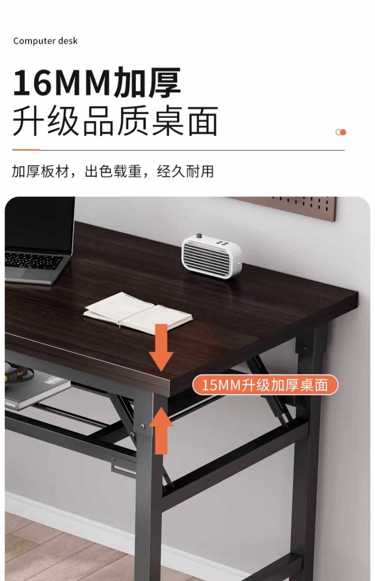 - 15MM thickened desktop [bamboo grain] 80*40 free installation-reinforced cross brace