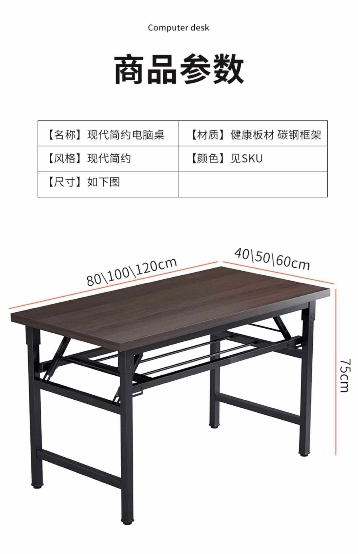 - 15MM thickened desktop [black walnut] 80*50 installation-reinforced cross brace