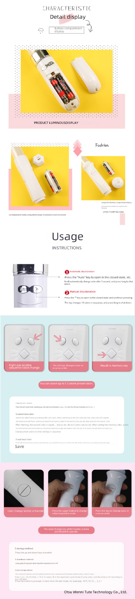 - 24 color adorable cat stick (with battery)
