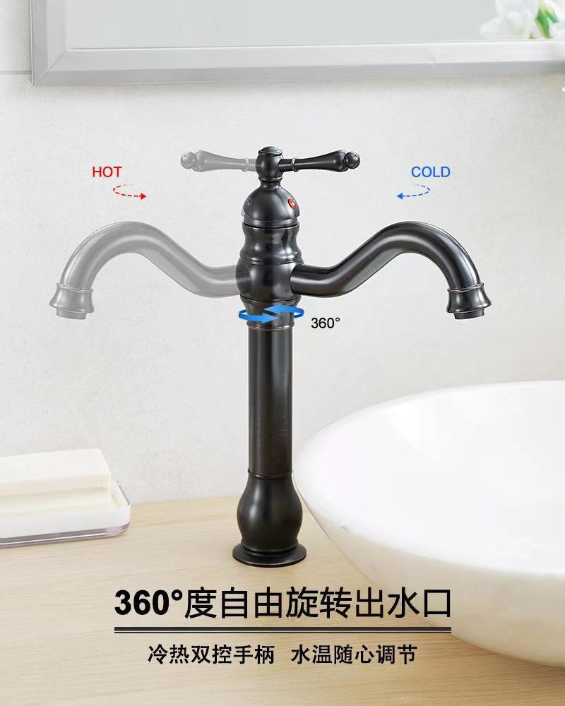 Copper Black ancient hot and cold basin wash basin faucet basin faucet retro kitchen hot and cold bathroom faucet