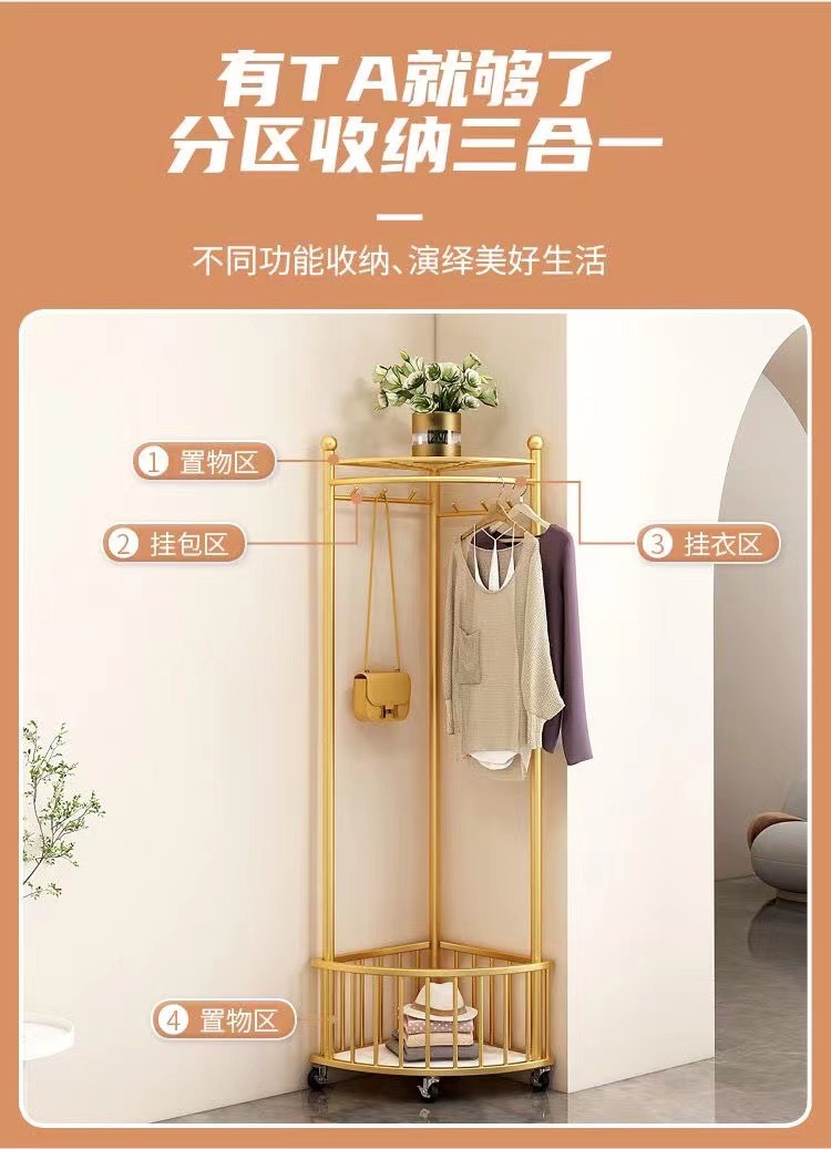 Corner Coat Rack Simple Floor Household Living Room Hanger Vertical Bag Rack Creative Storage Home Storage Rack