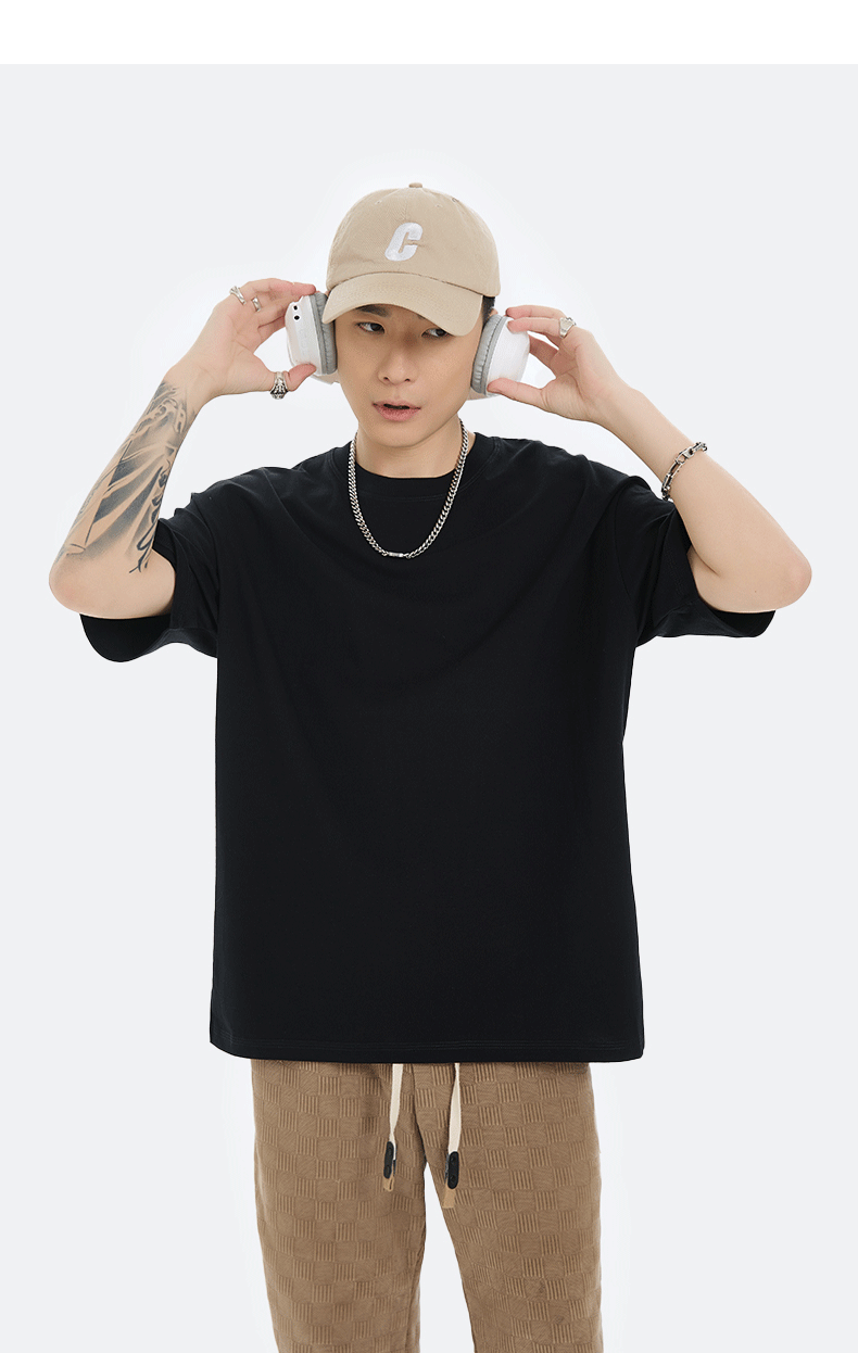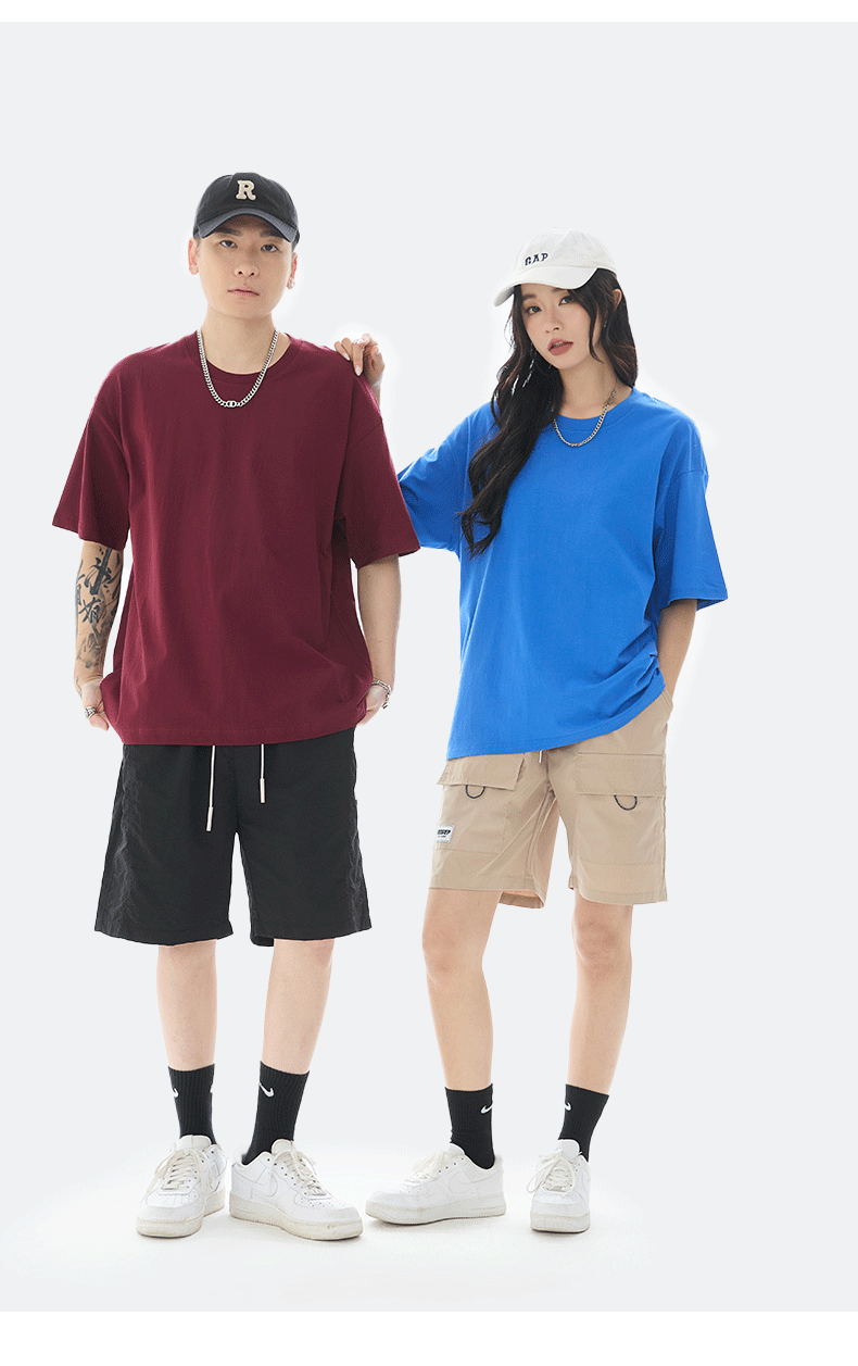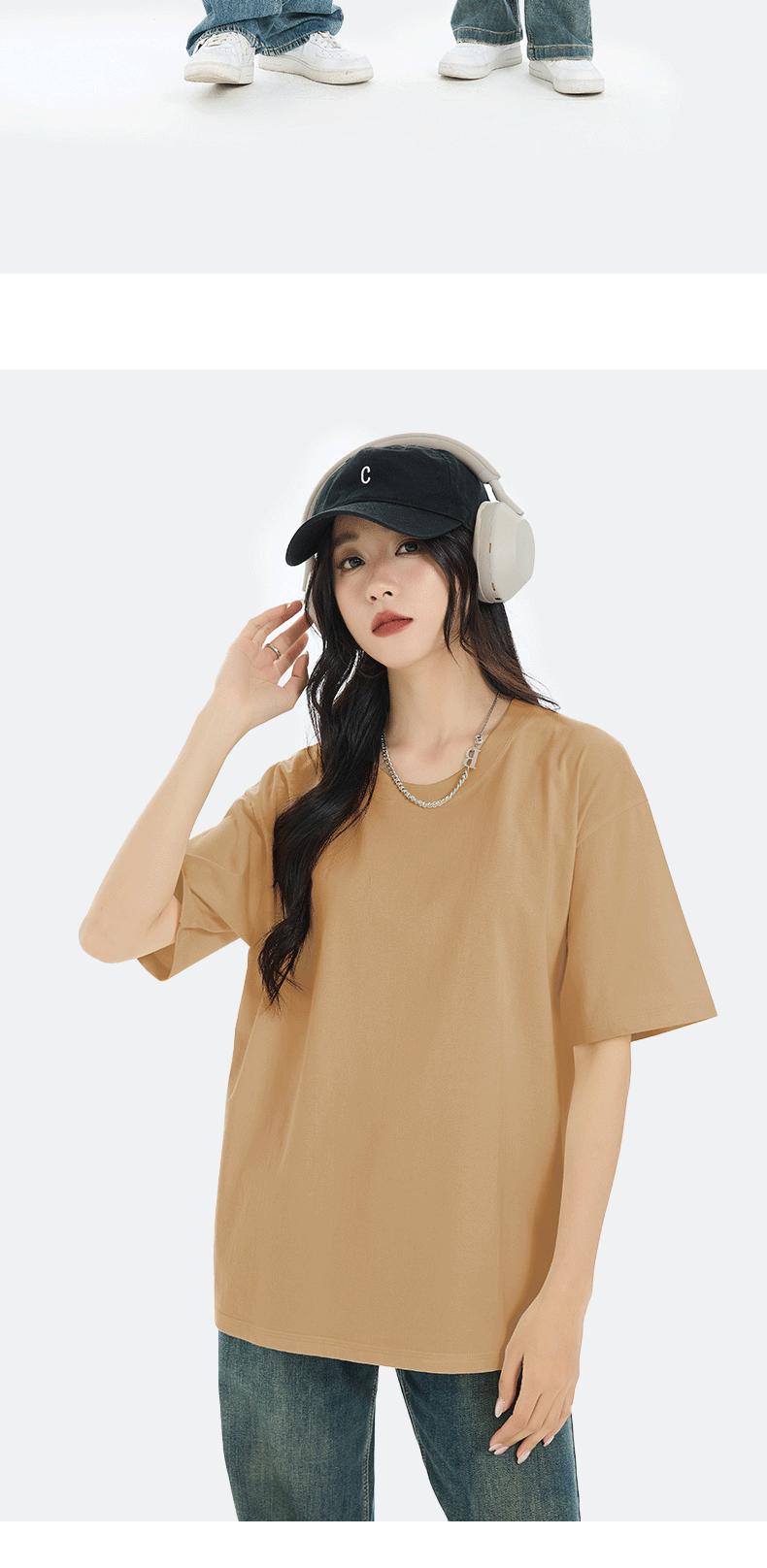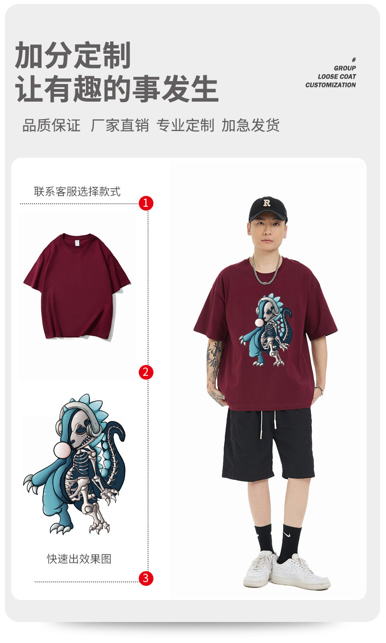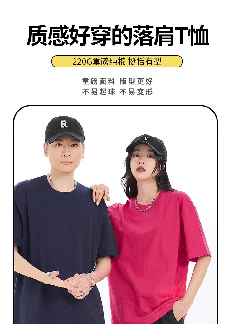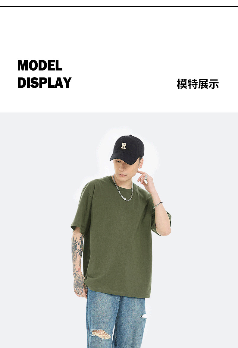 Cotton T shirt Customized Work Clothes Printed LOGO Fashion Brand Shoulder drop Heavy plus size Class Clothes Party Summer Round Neck Short Sleeve