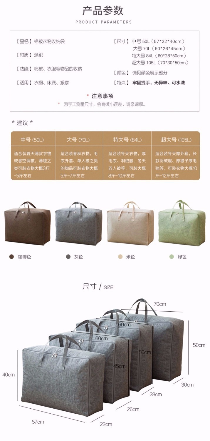 Cotton and linen quilt storage bag thickened moisture-proof dustproof storage bag large capacity quilt clothing packaging organizing bag wholesale