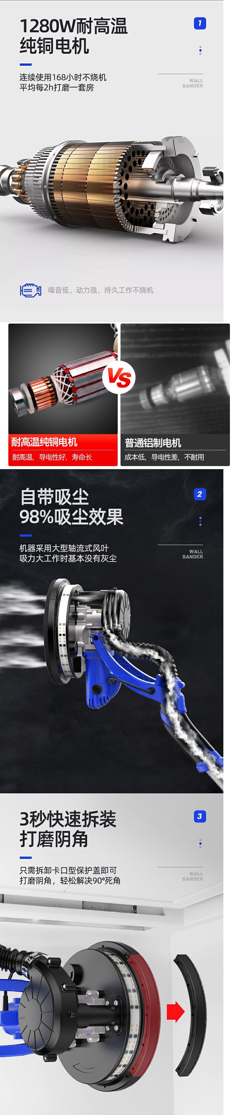Craftsman Wall grinding machine putty dust free self suction grinding Wall machine Wall sanding machine multi function