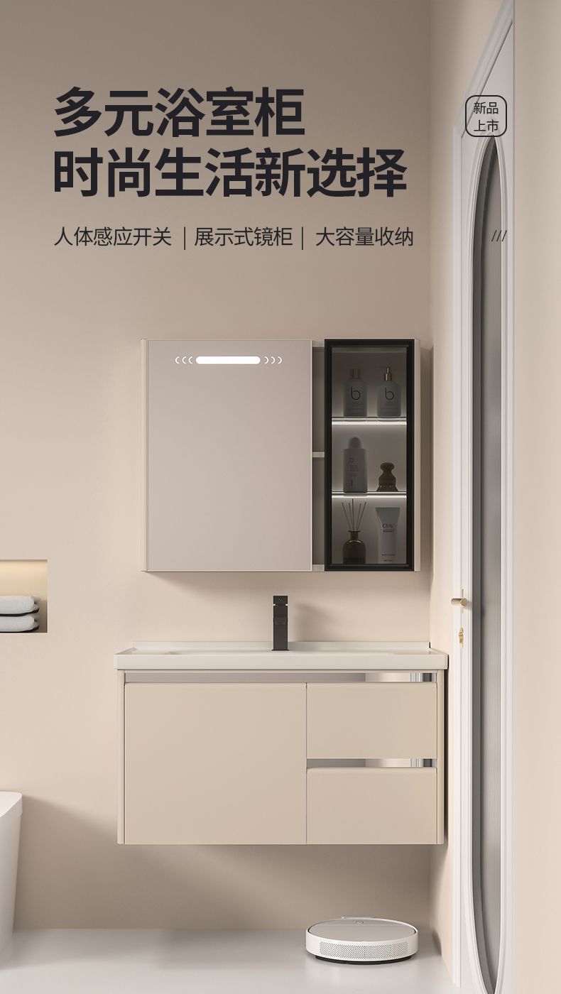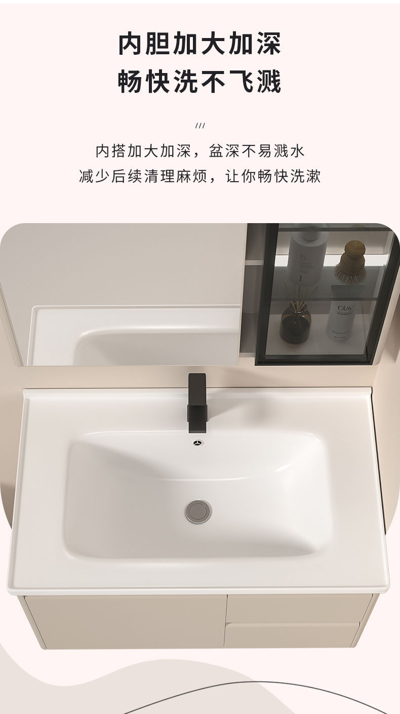 - Milk Cafe Silver Ceramic Basin Intelligent Mirror Cabinet -80CM