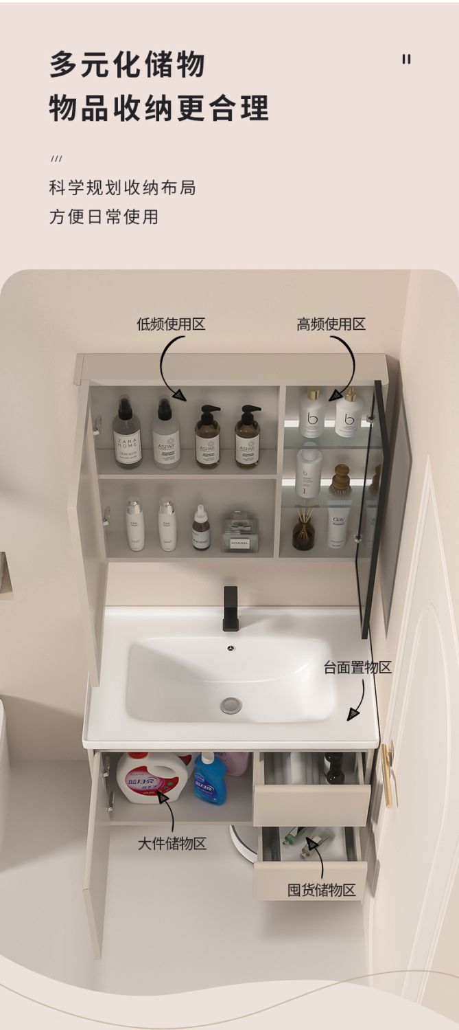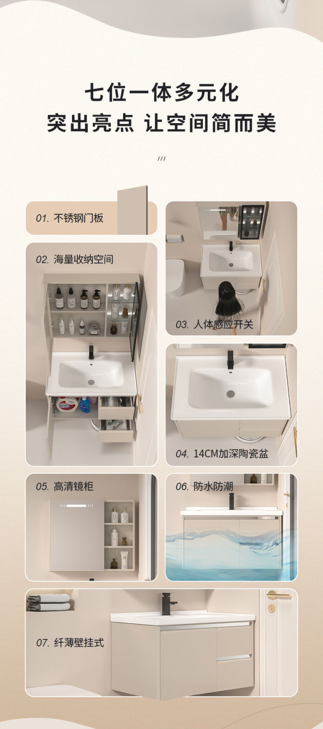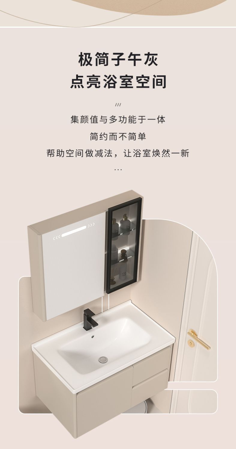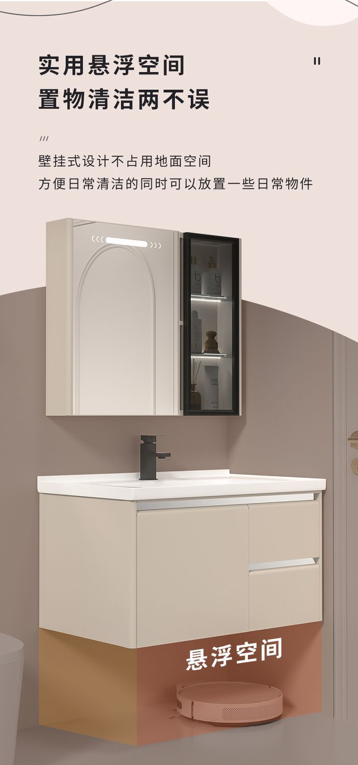- Milk Cafe Silver Ceramic Basin Intelligent Mirror Cabinet-Cure 70CM