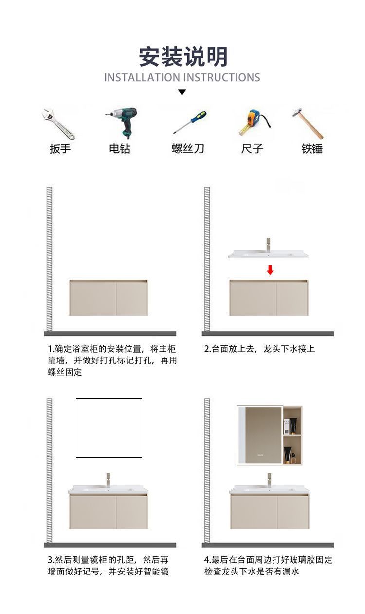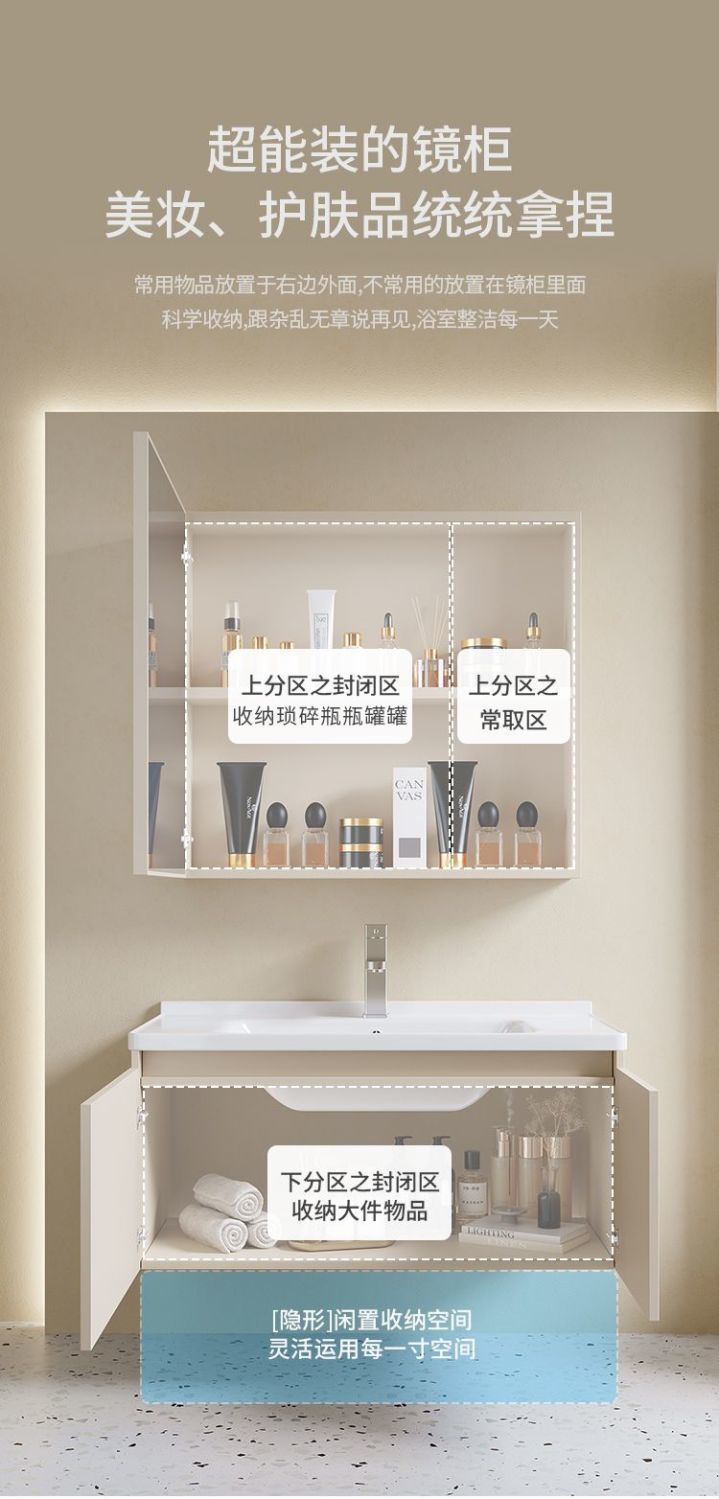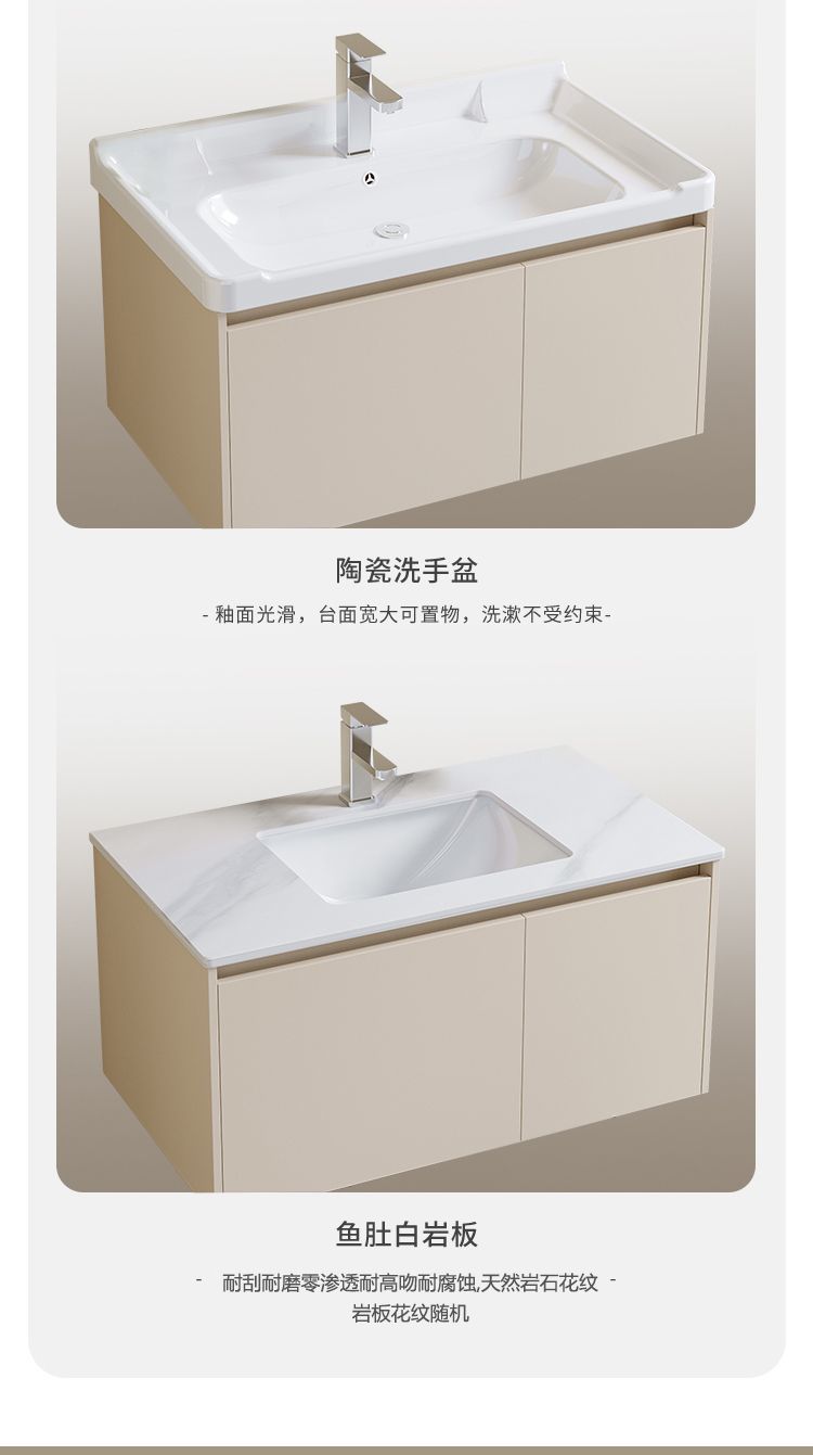 - New cream mirror cabinet -80cm fish belly white rock plate