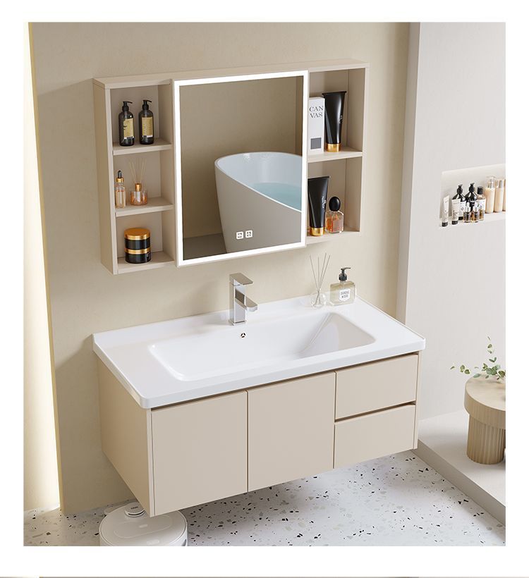 Cream Wind Wall Hanging Wash Basin Toilet Sink Sink Household Space Aluminum Smart Bathroom Cabinet Combination