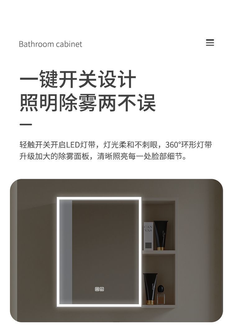 - New cream intelligent mirror rear shelf mirror cabinet -80cm fish belly white rock plate