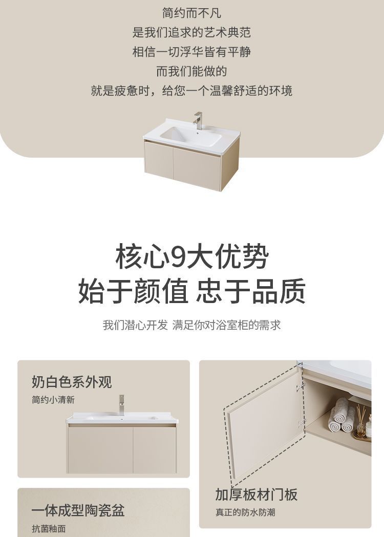 - New cream mirror cabinet -80cm ceramic flat basin