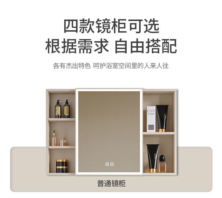 - New cream intelligent mirror rear shelf mirror cabinet -80cm ceramic flat basin