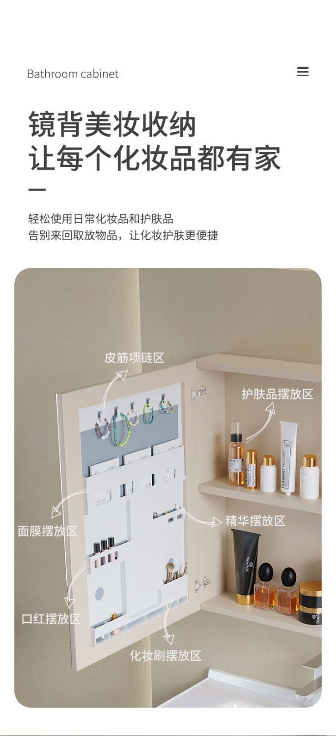 - New cream smart mirror rear shelf mirror cabinet -40cm ceramic