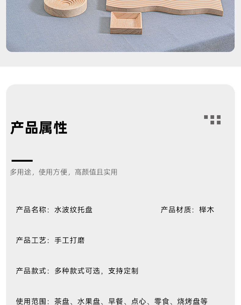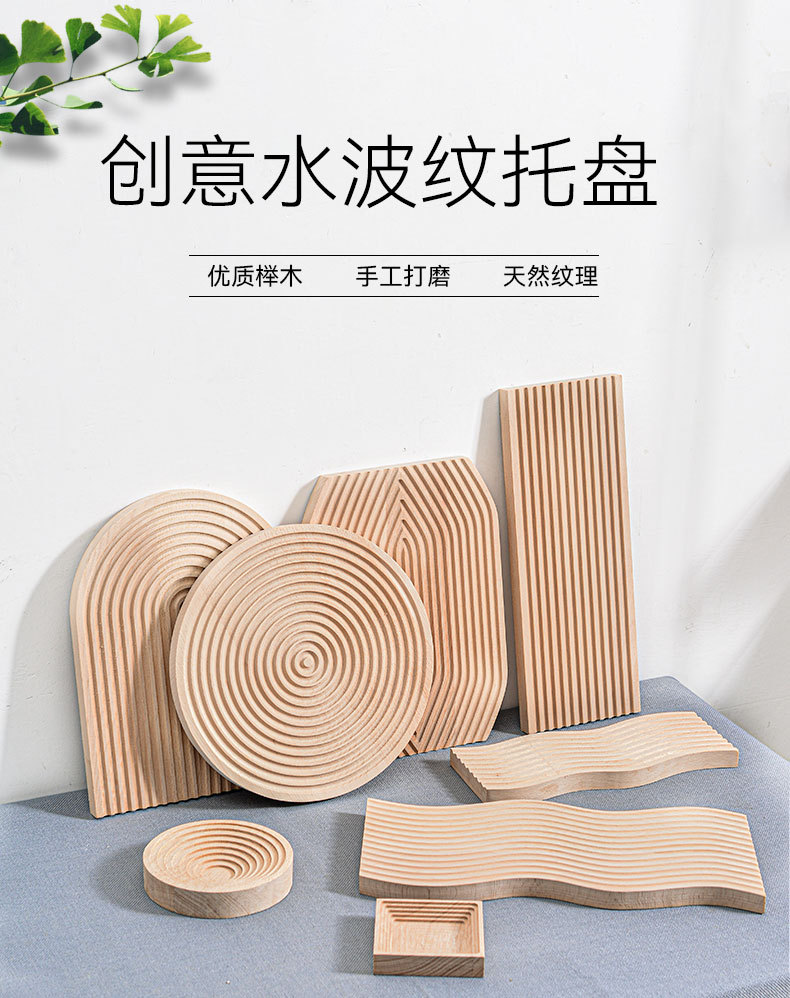 Creative Irregular Outdoor Barbecue Wooden Tray Water Ripple Afternoon Tea Fruit Plate Solid Wood Dessert Beech Tea Plate