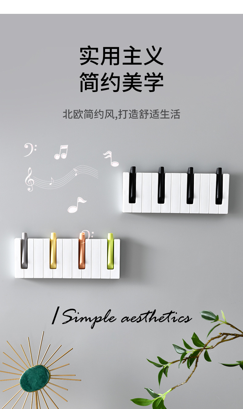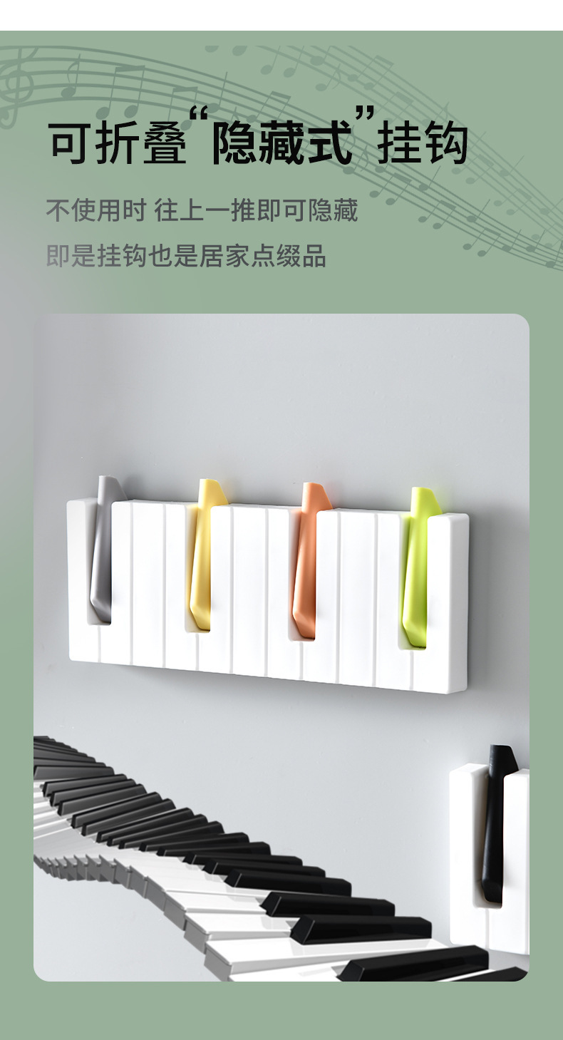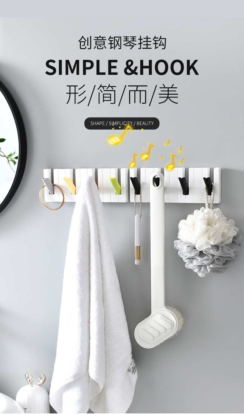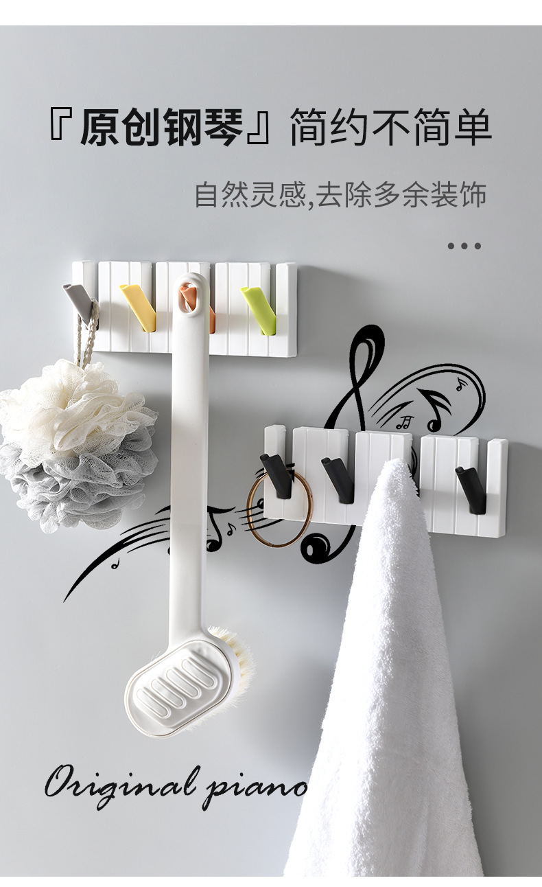 Creative Piano Hook Wall Adhesive Umbrella Key Bag Coat Hood Hanger Hook Kitchen Hook Storage Rack