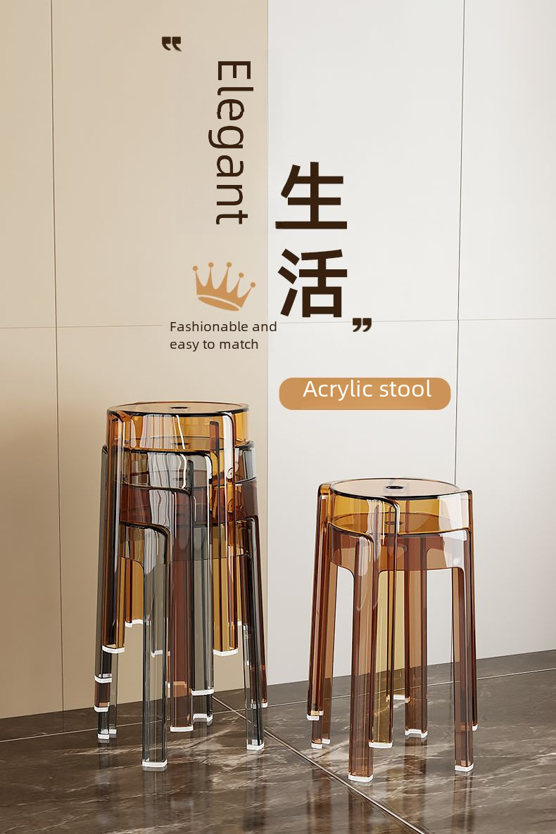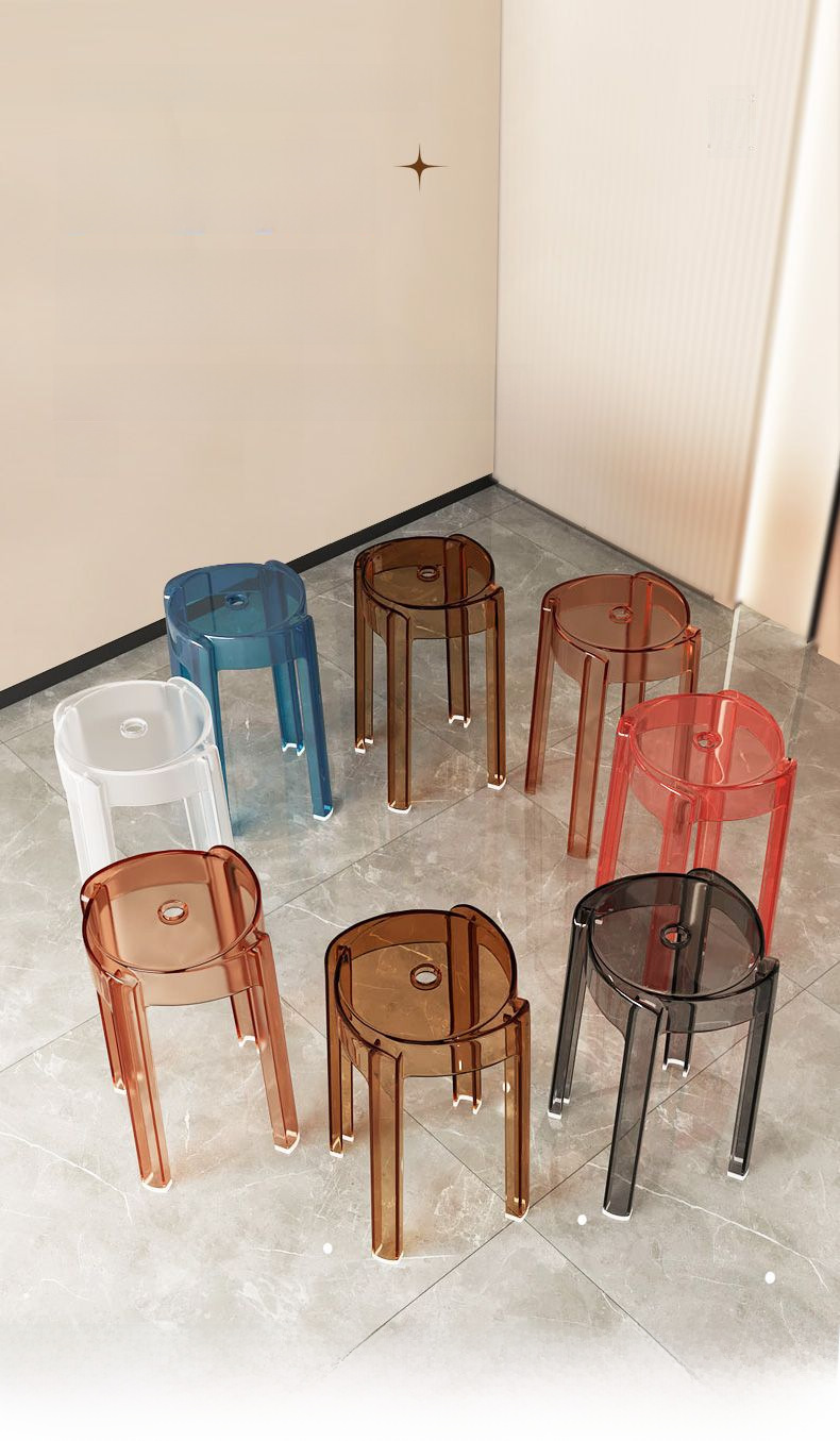 Creative Plastic Stool Household Thickened Chair Transparent Windmill Chair Stackable Simple Round Stool Acrylic Dining Table and Chair