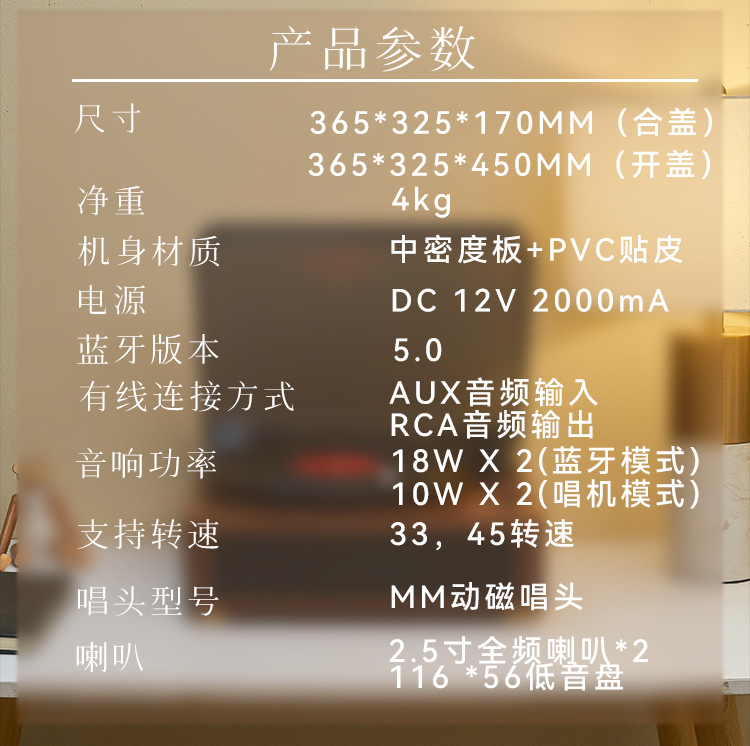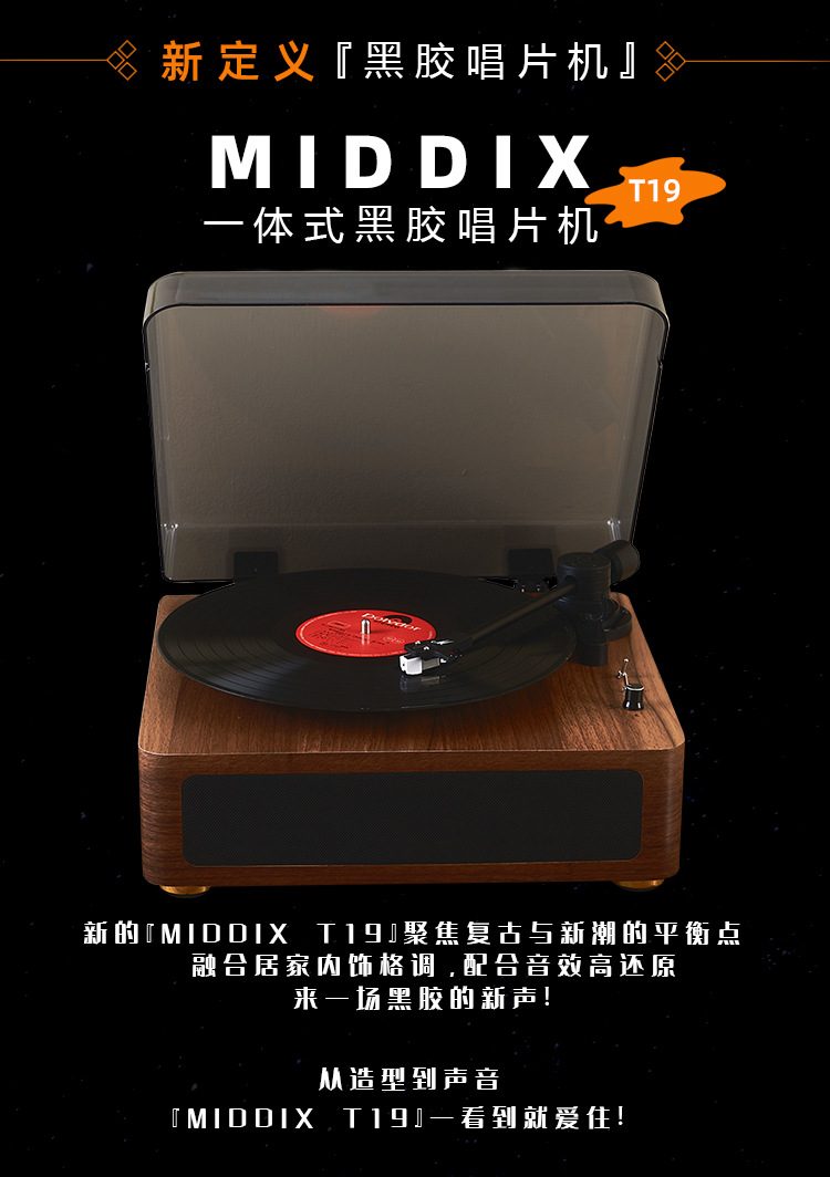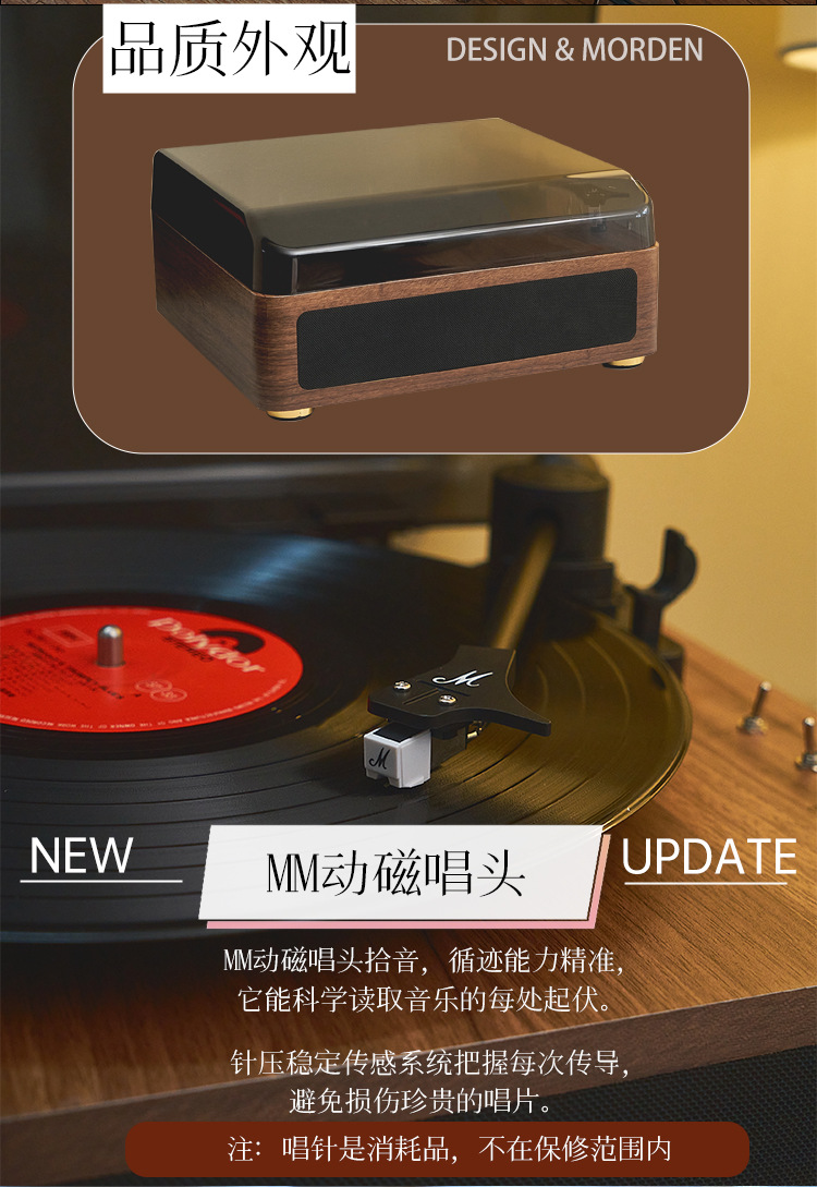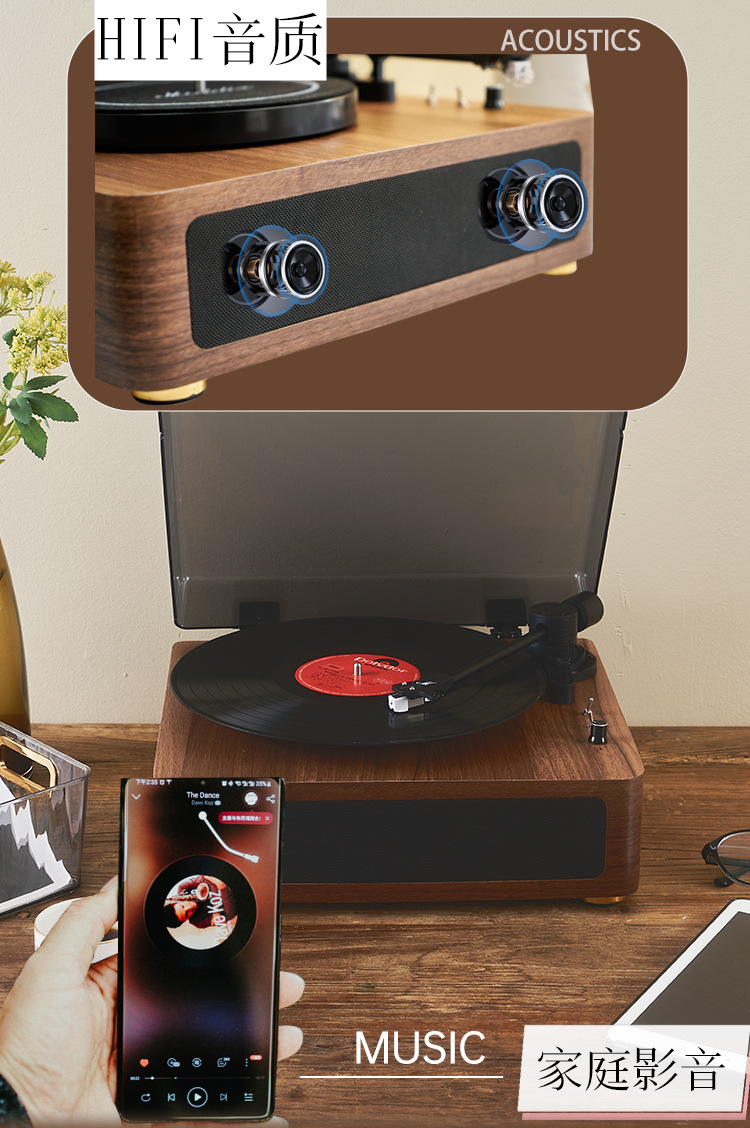 Creative Retro Phonograph Bluetooth Audio Radio Gift Magnetic Integrated Black Glue Record Player