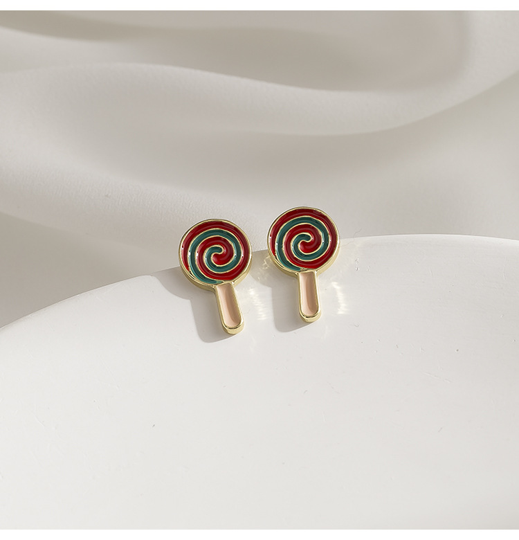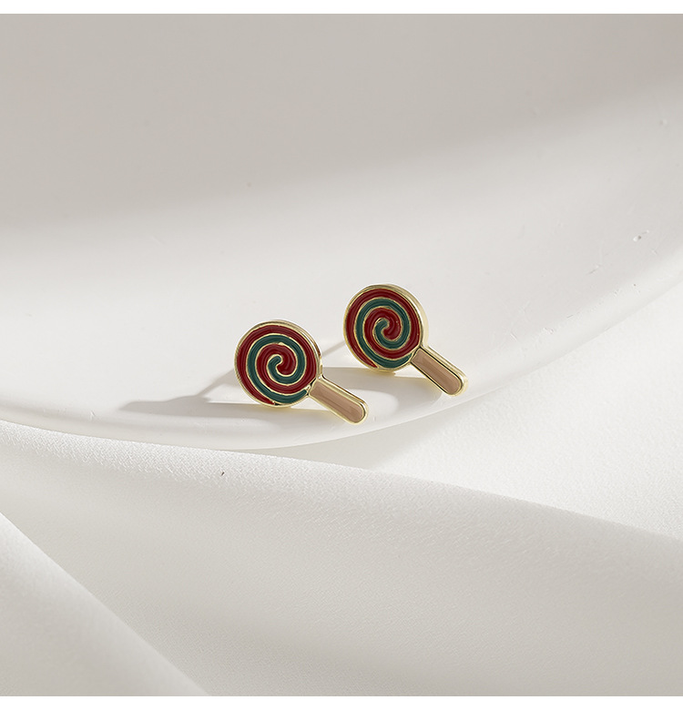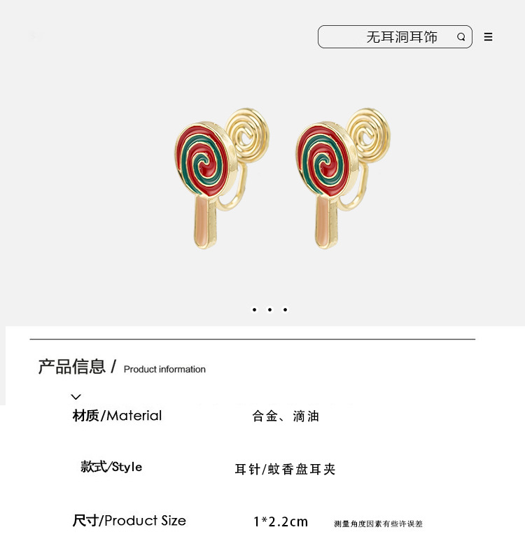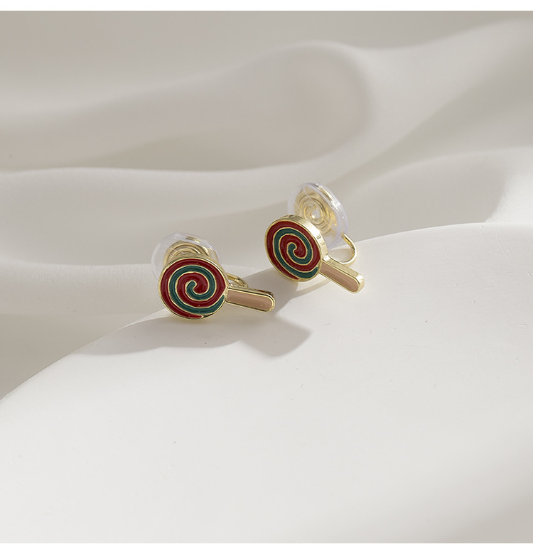 Creative cartoon cute lollipop stud earrings fashionable all match student children s earrings mosquito coil ear clip without pierced female