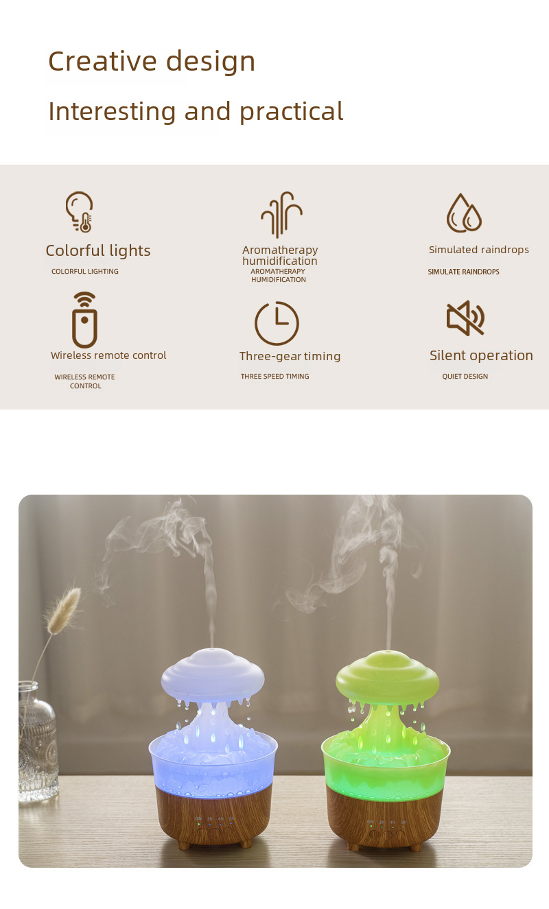 Creative colorful light raindrop aromatherapy machine desktop office aromatherapy cloud under cloud humidifier cross border