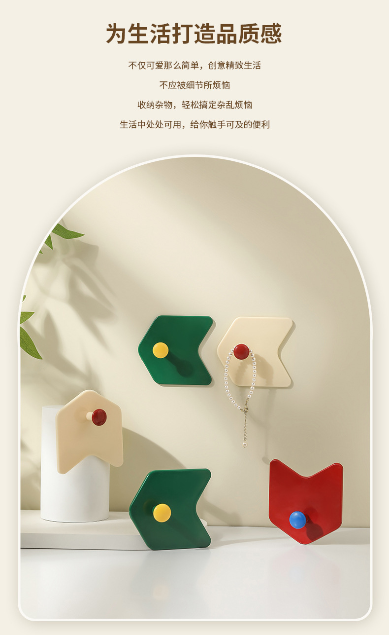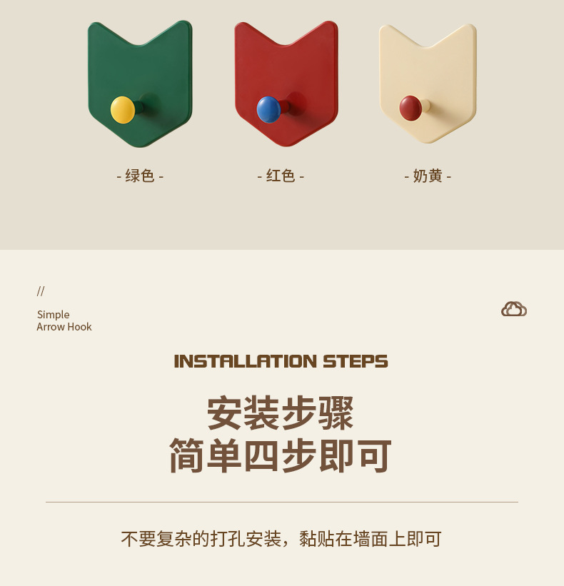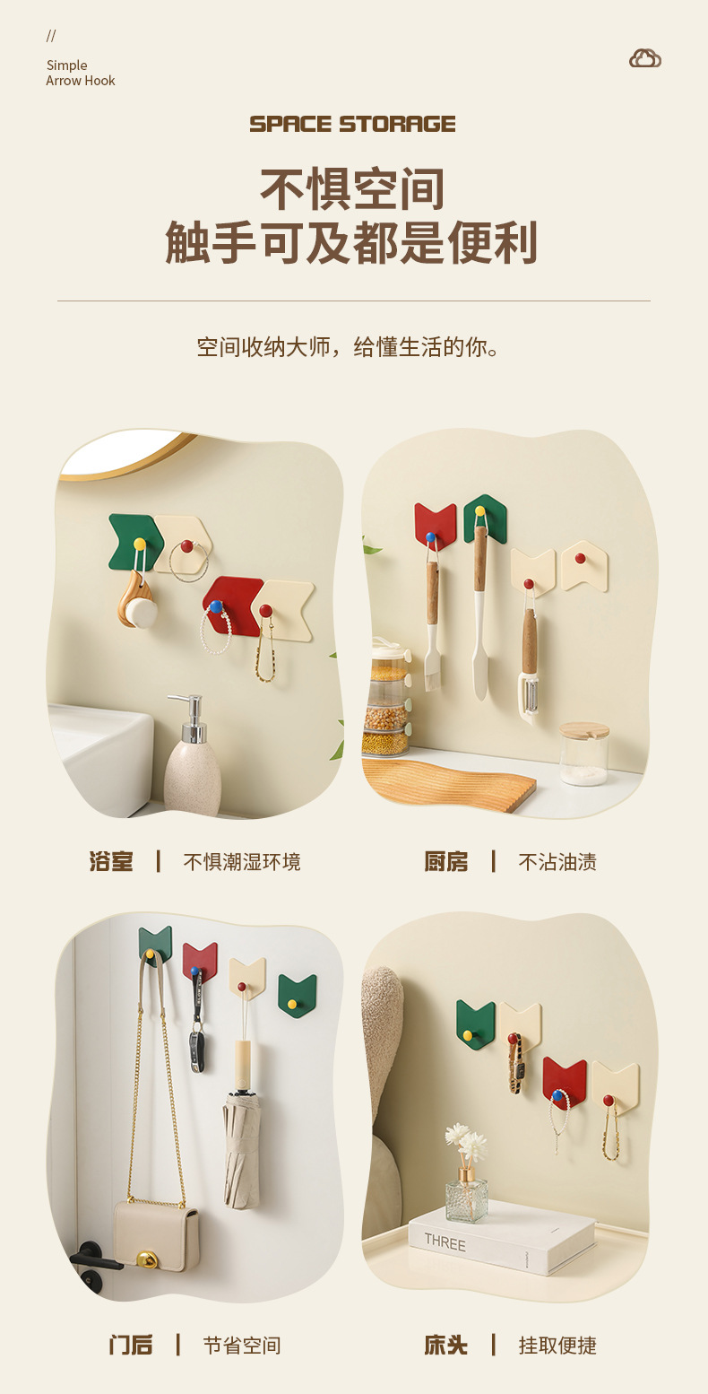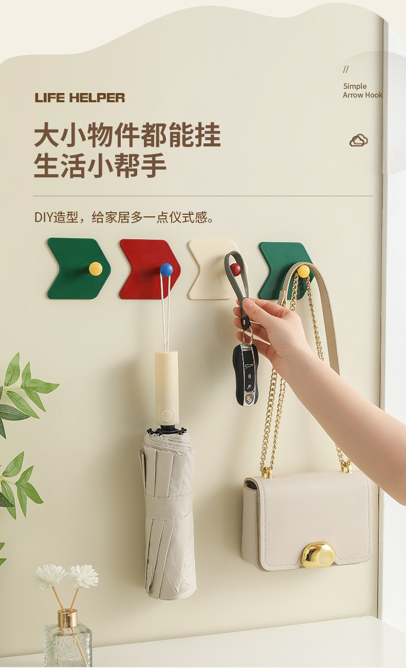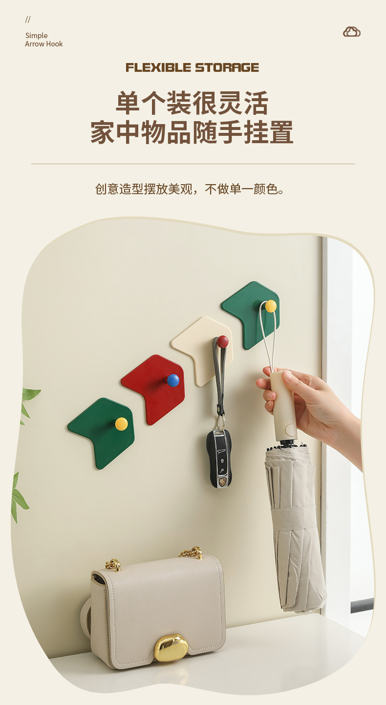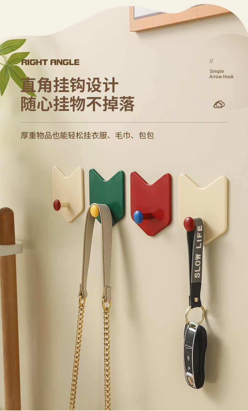 Creative hole free hook dopamine color simple arrow hook kitchen bathroom strong hook