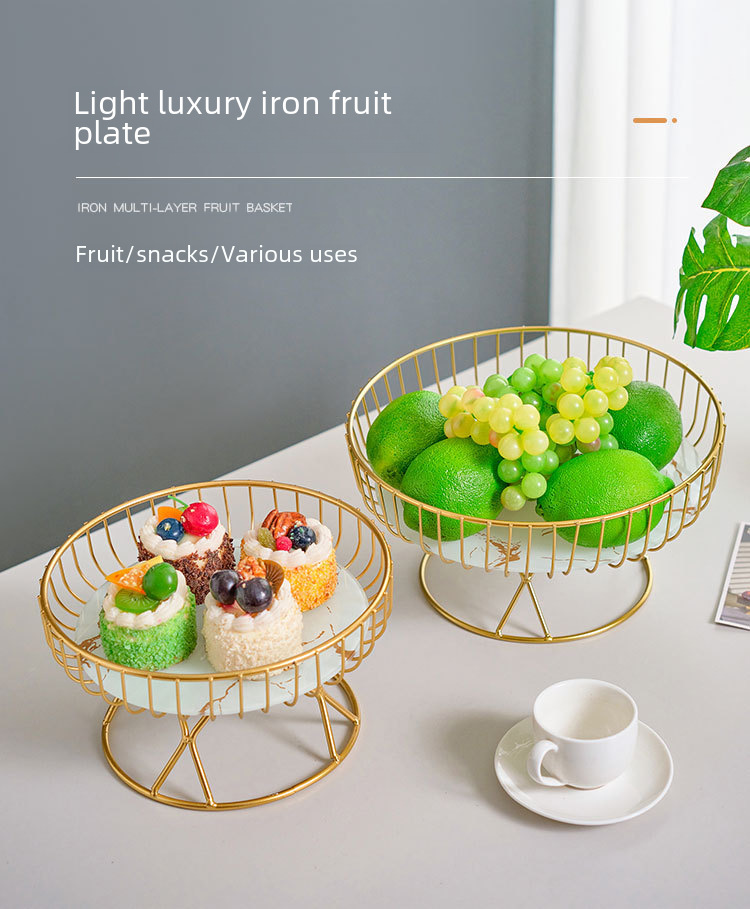Creative household fruit plate light luxury simple dried fruit snack plate double layer living room kitchen dining table fruit basket dessert shelf