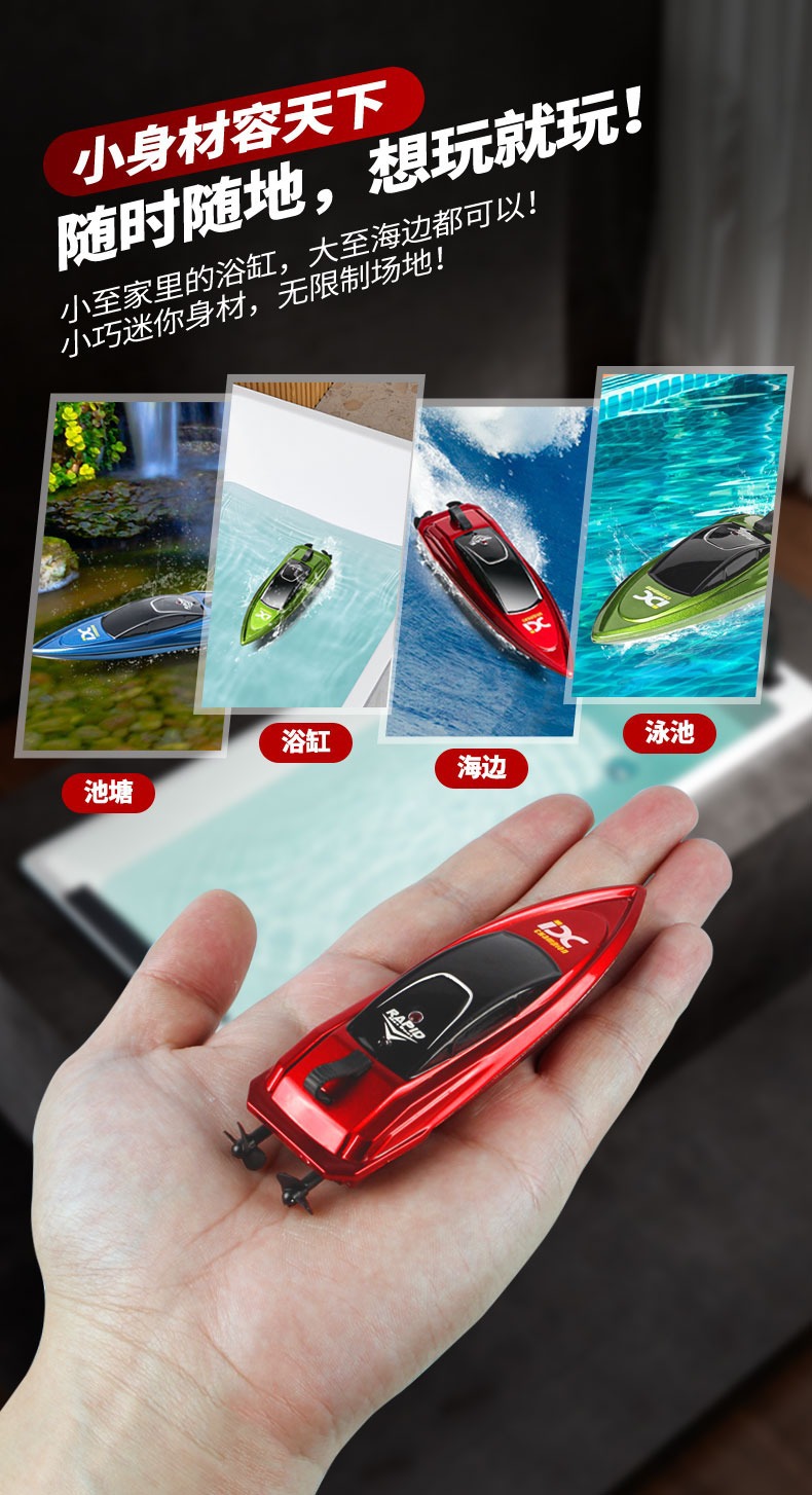 Cross Border Kids Mini Remote Control Boat 2.4g Water High Speed Boat Rechargeable Waterproof Yacht Boy Toy Gift