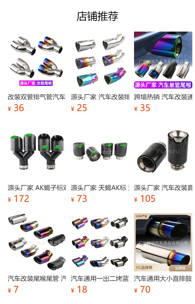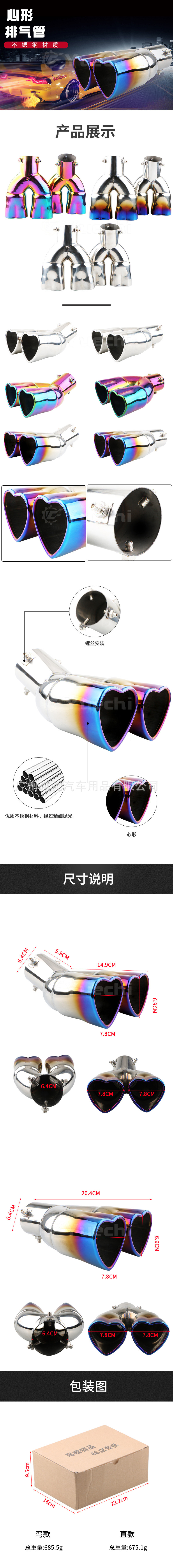 Cross-Border heart-shaped double-row universal color car tail throat thickened stainless steel love baked blue exhaust pipe muffler