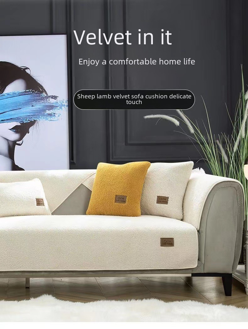 Cross Border lamb velvet sofa cushion winter non slip plush padded Nordic sofa cover cushion cover towel wholesale
