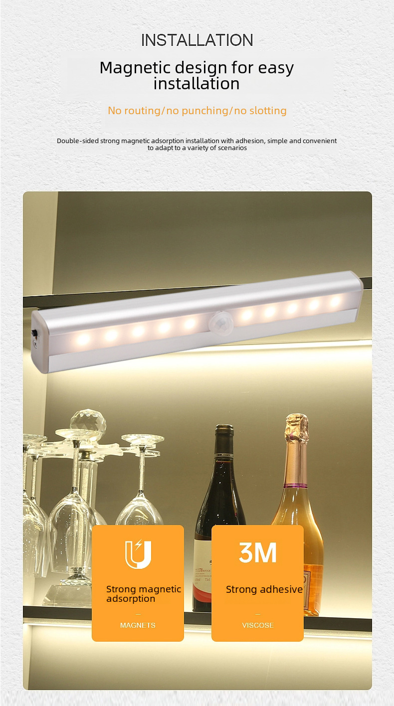 Cross Border preferred led human body induction light battery night light smart wardrobe cabinet light aisle closet corridor