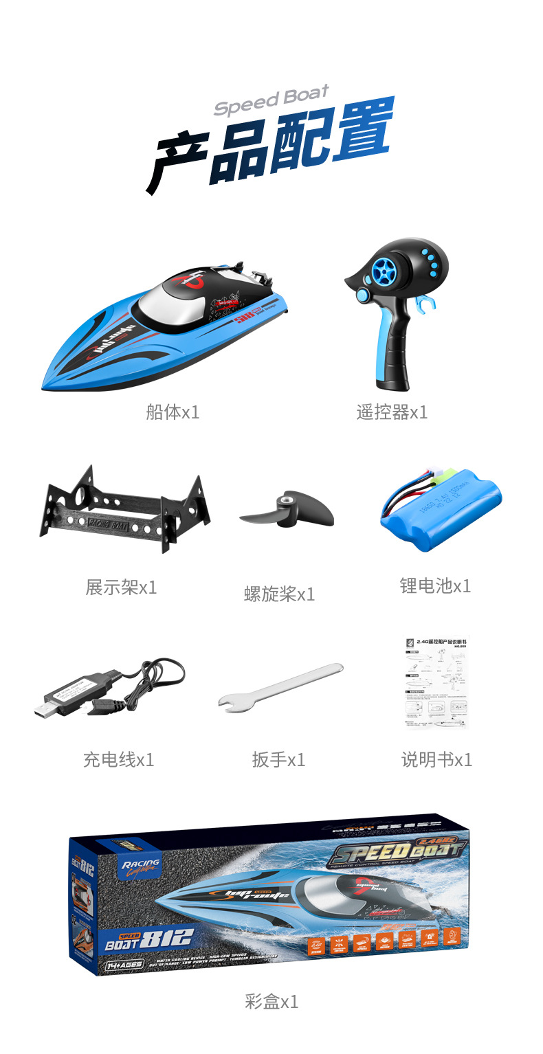 Cross border 812 remote control boat 2.4g long endurance high speed speedboat electric brushless water dragnet competition airship toy