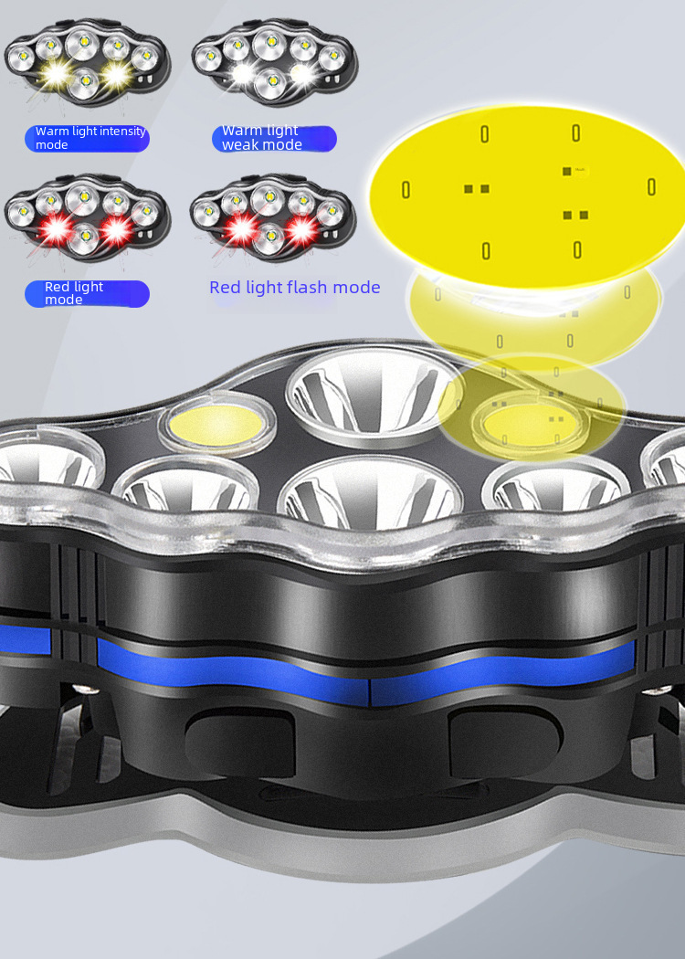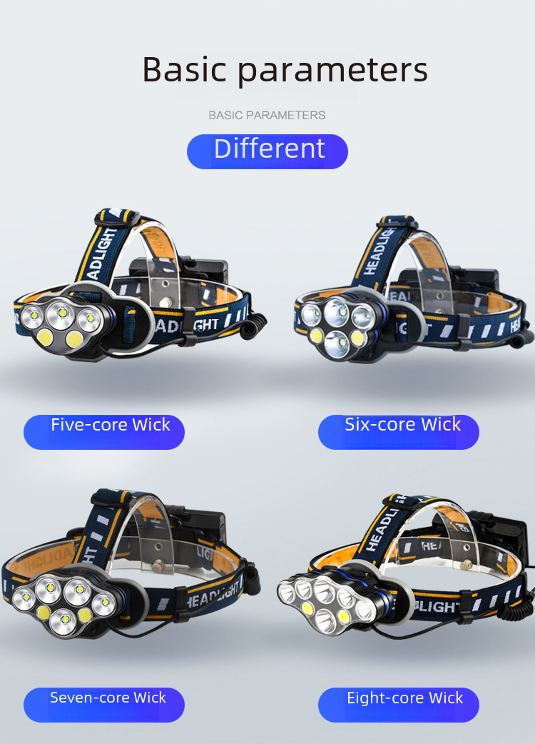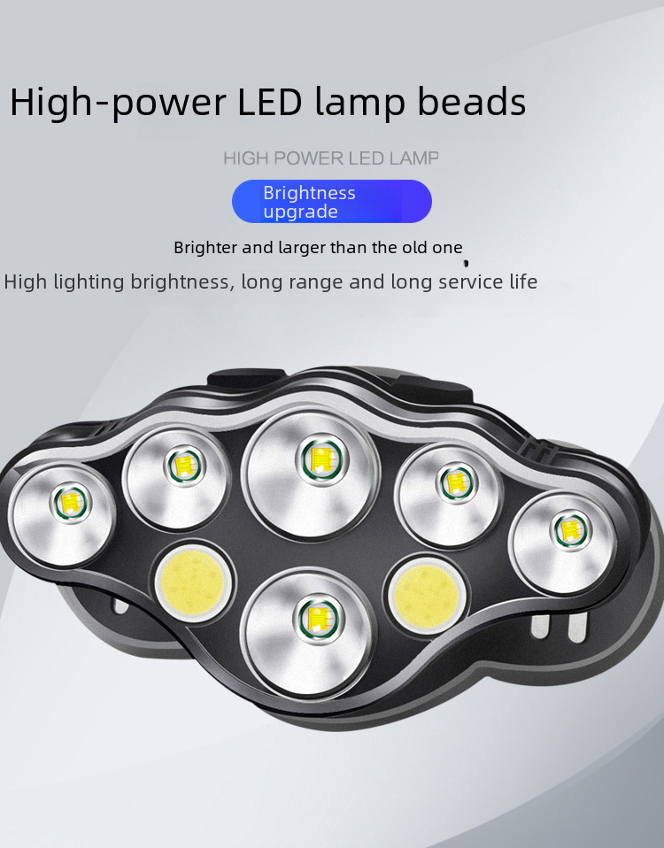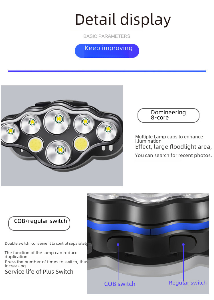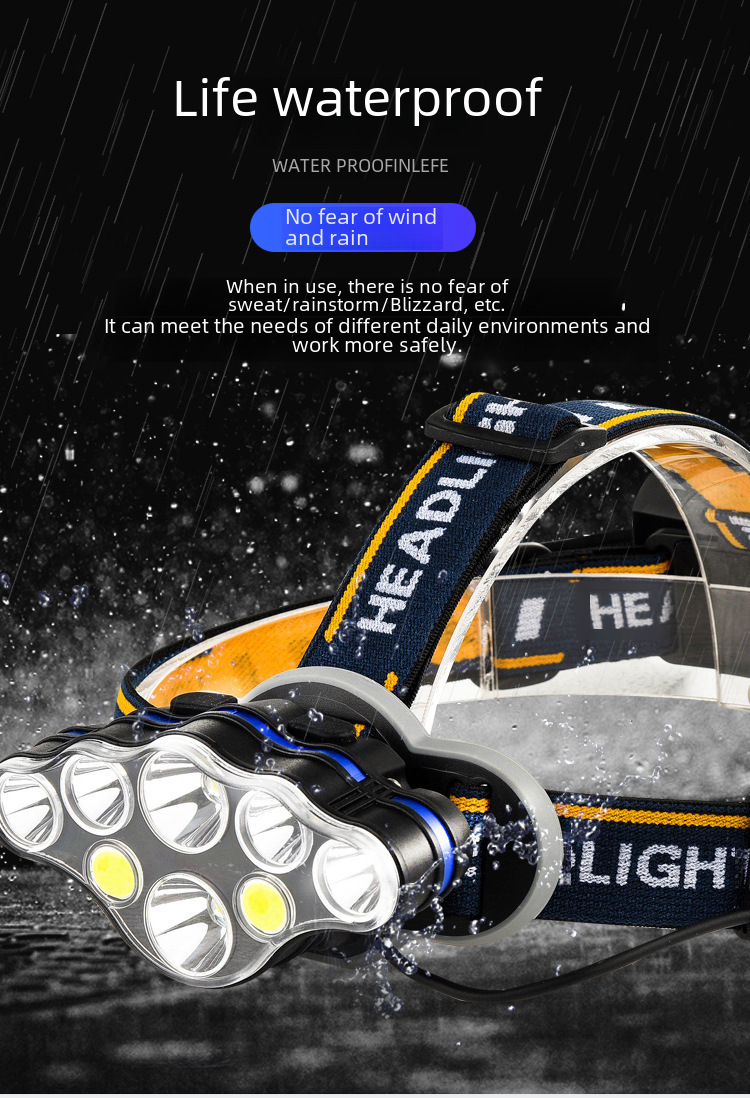 Cross border 8LED outdoor T6 strong light head mounted flashlight USB rechargeable camping night fishing waterproof COB floodlight headlight