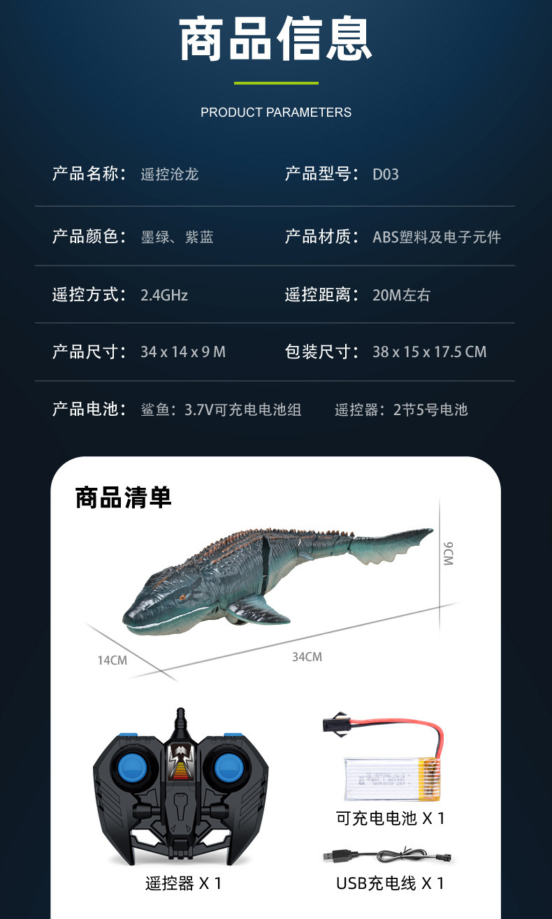 Cross border Canglong remote control boat 2.4G high speed shark boat submarine remote control trick water toys wholesale