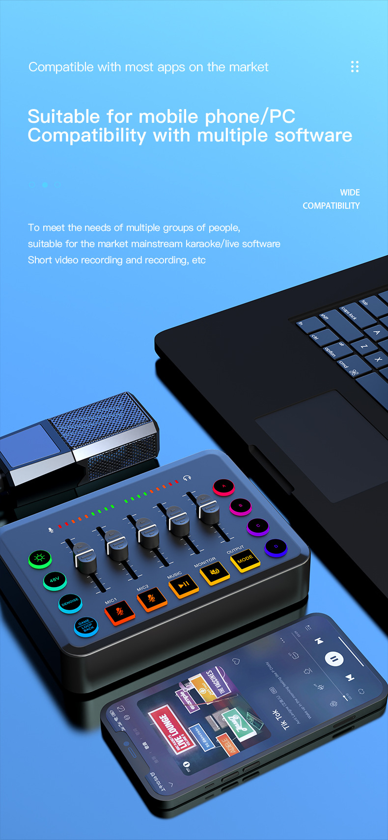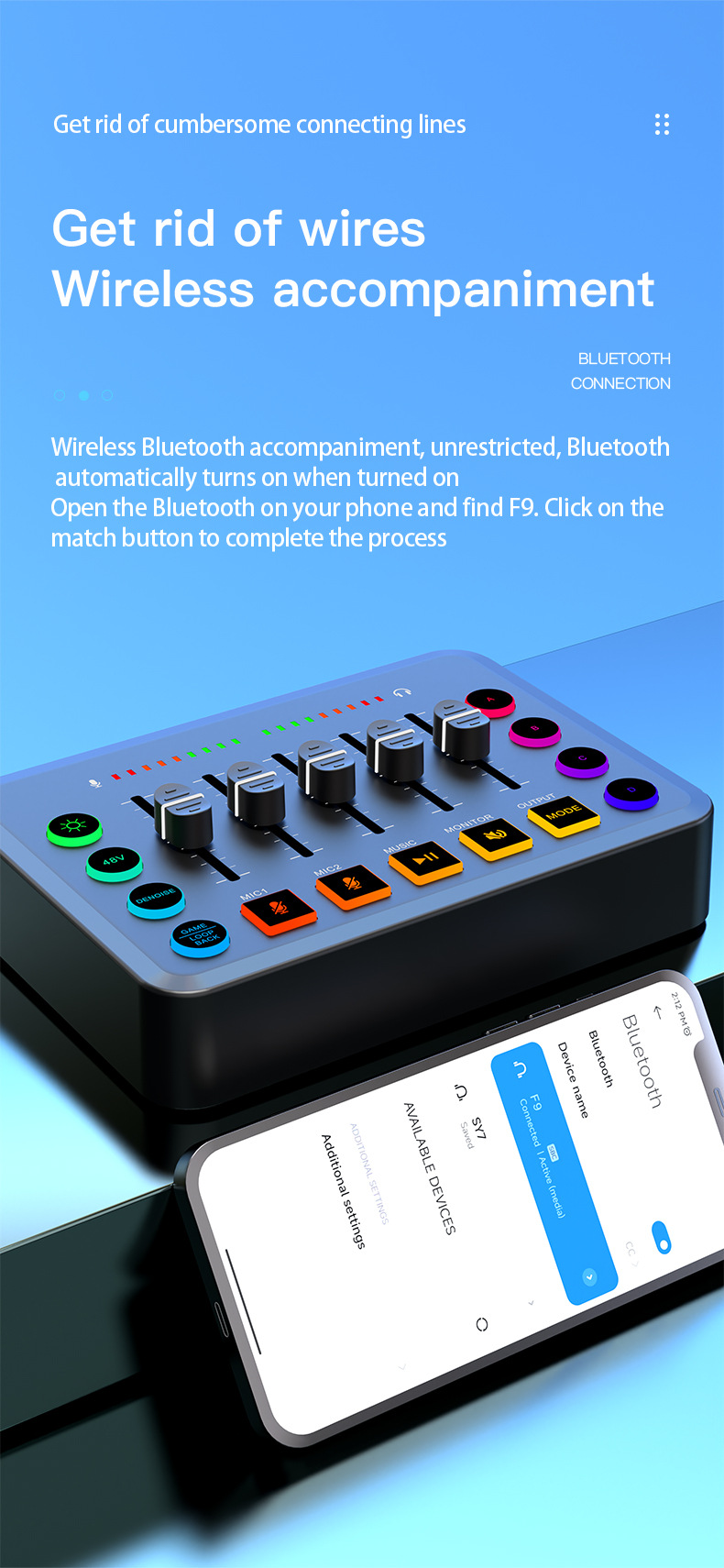 Cross-border F9 live broadcast dedicated singing 48V sound card equipment mobile phone computer blog TK mixer