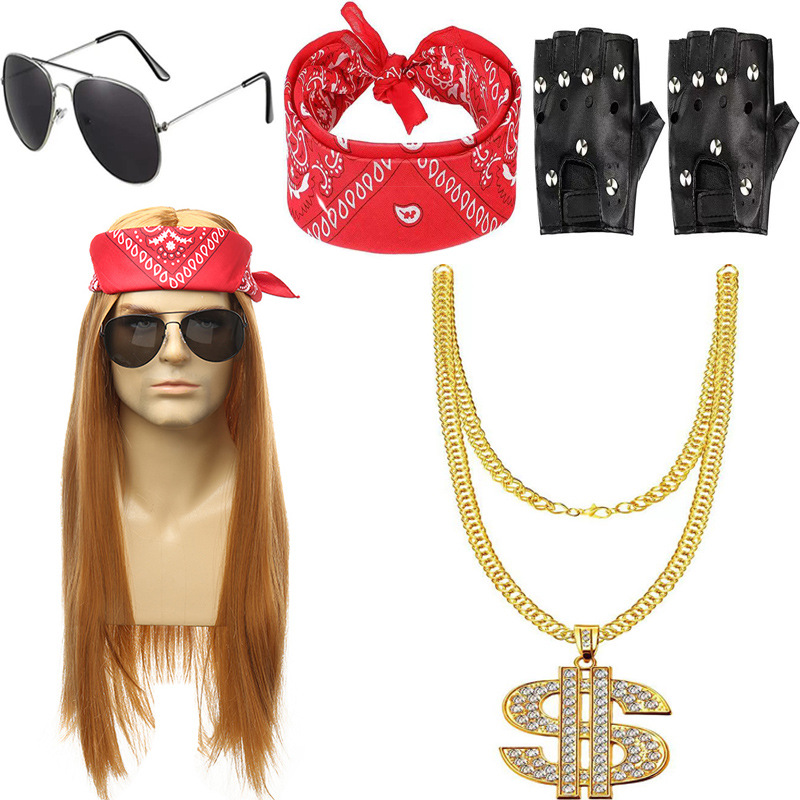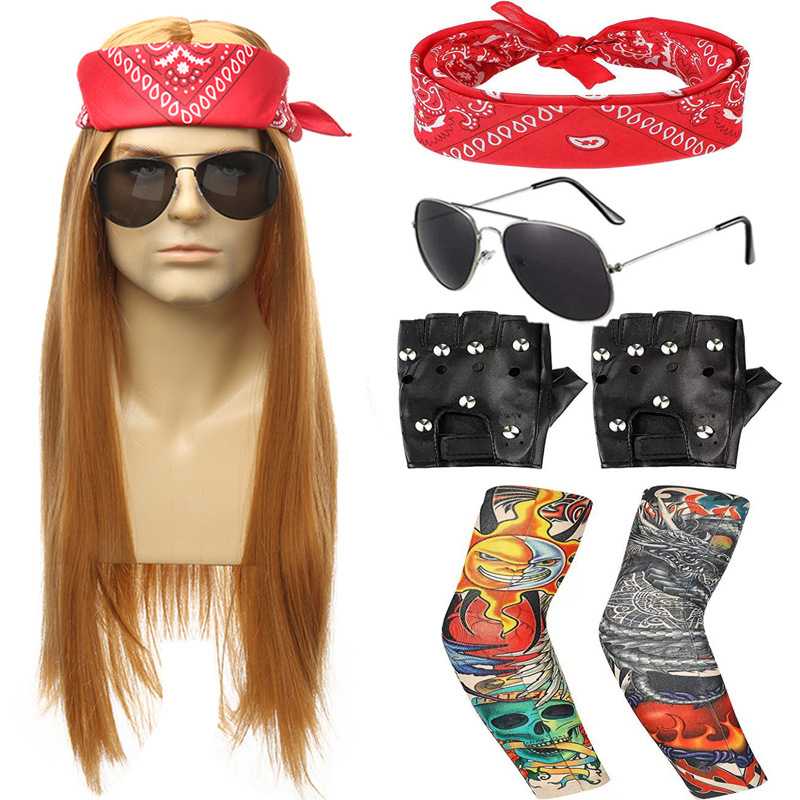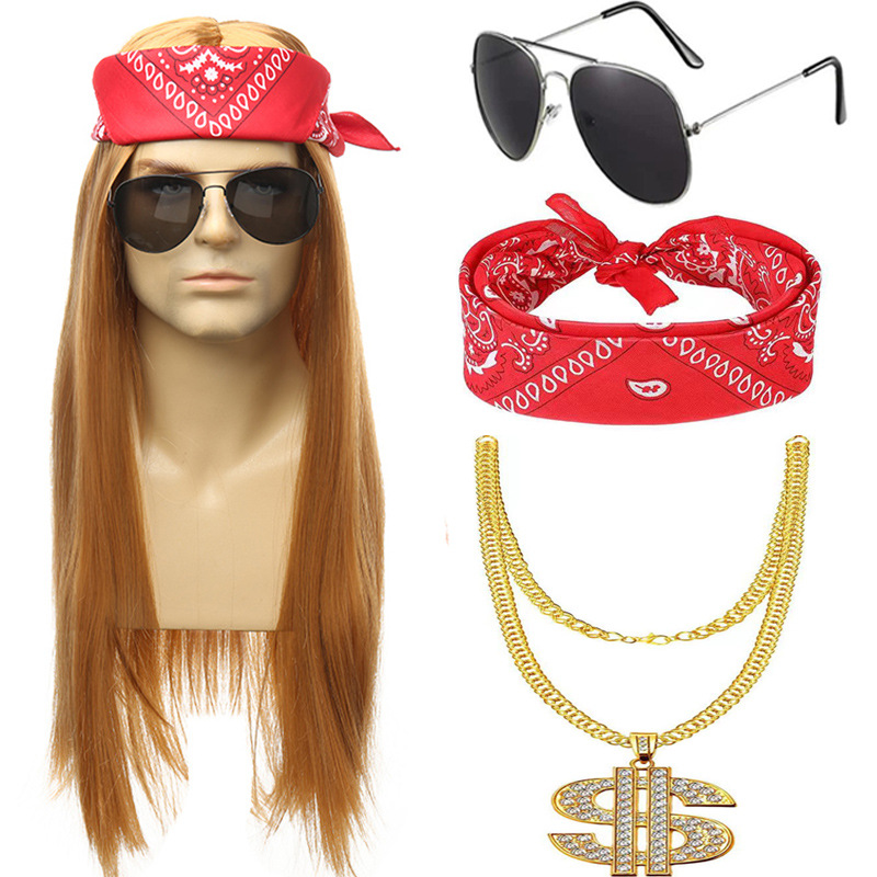 Cross border Halloween Disco Mullet Wig European and American Men s Rock Wig Mixed Color Punk Long Straight Funny Hair