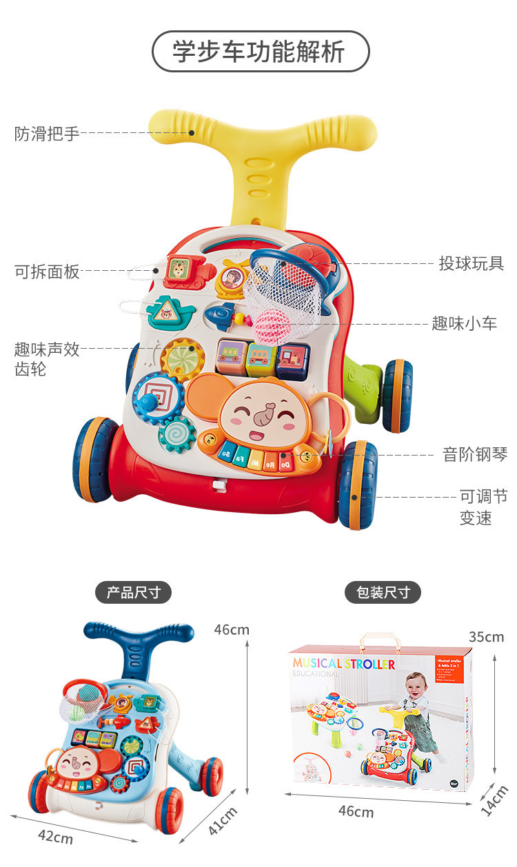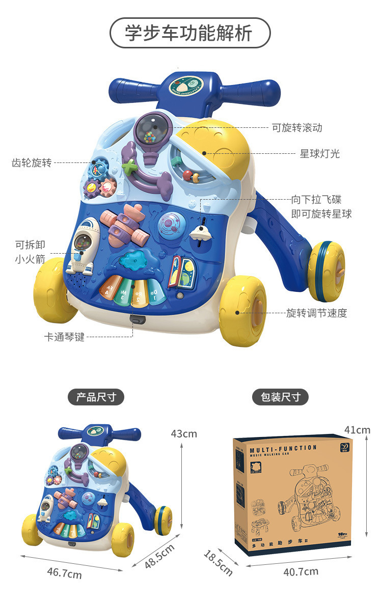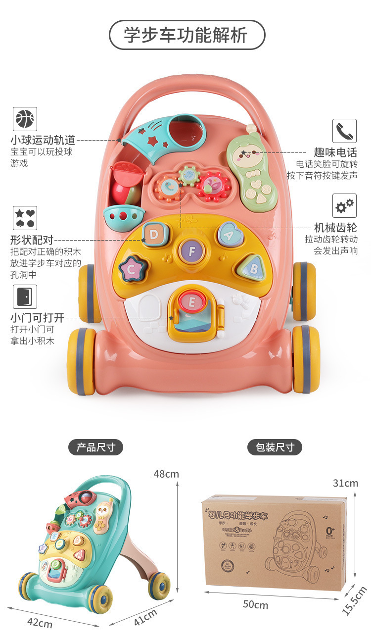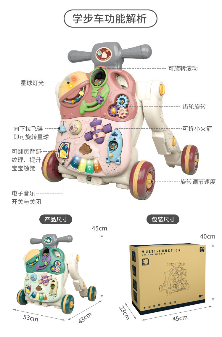 Cross border Hot Selling Southeast Asian Baby Toy Baby Walkers Multi function Anti rollover with Music Toddler Trolley