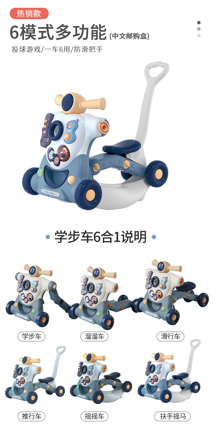 - New-Hand Push Rocking Horse Sliding 6 in 1-Blue
