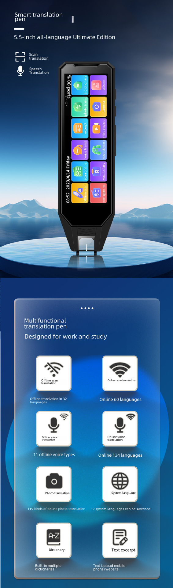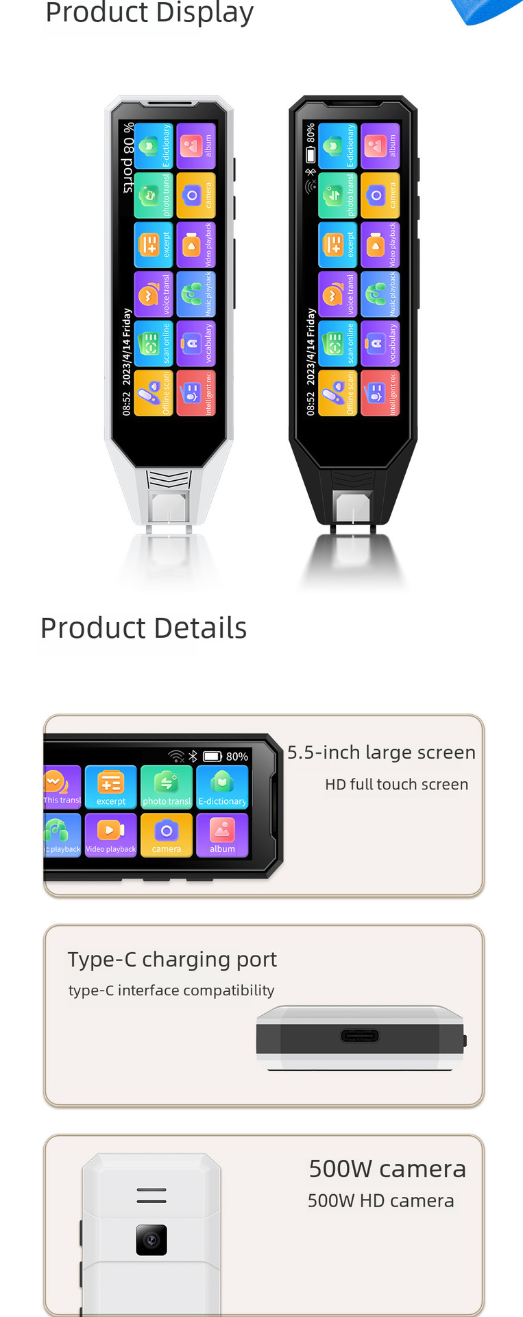 3.0 large screen [Upgraded Version] +12 kinds of offline scanning +134 kinds of Voice + photo translation +60 kinds of online scanning (Arabic/Thai, etc.)