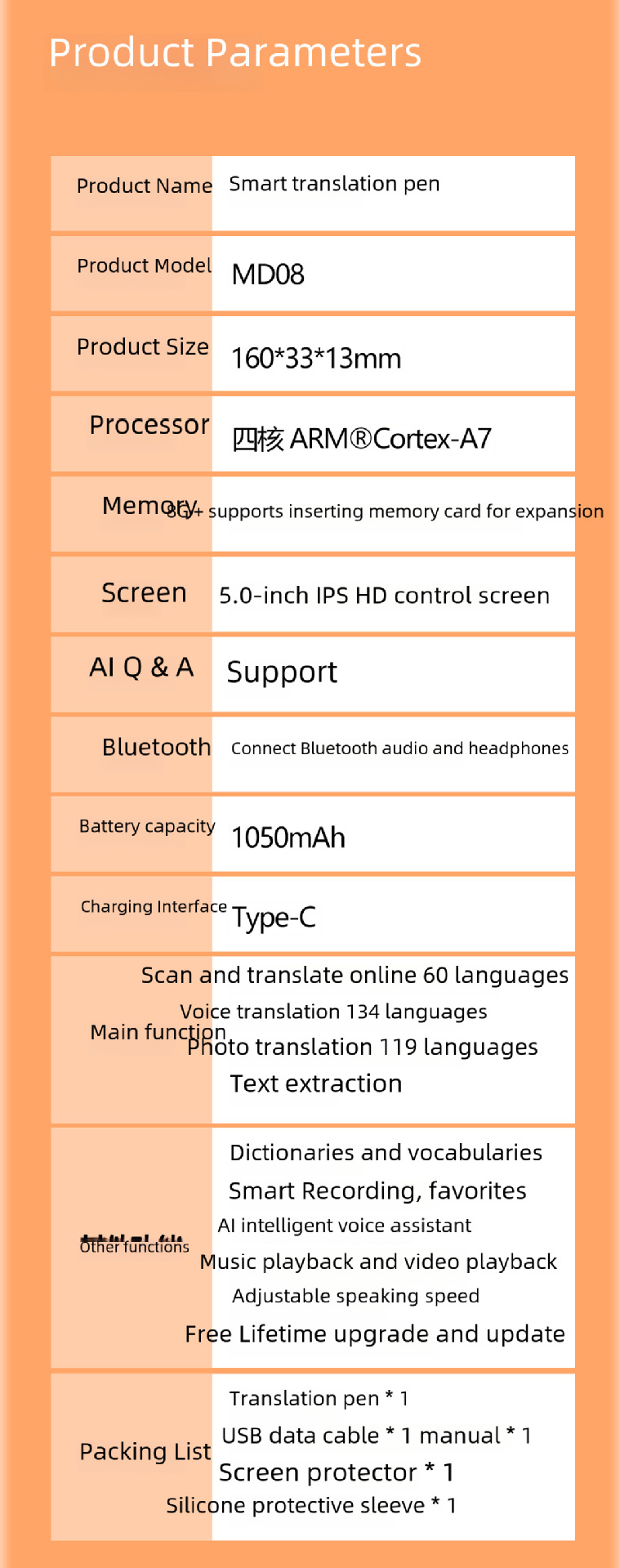 [MD04 Upgrade] 3.38: 9 kinds of offline scanning +134 kinds of Voice + photo translation +60 kinds of online scanning (Arabic/Thai, etc.)