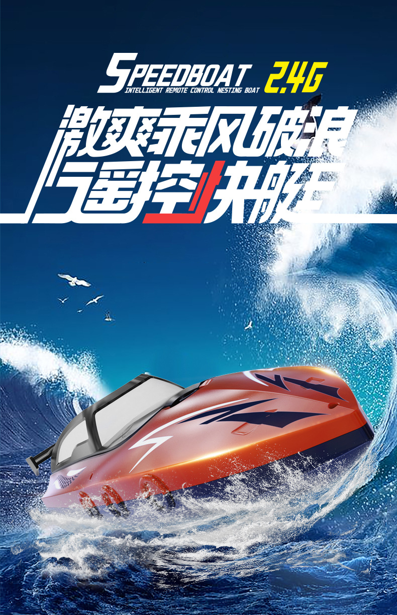 - 2.4G high-speed remote control speedboat [Orange]]